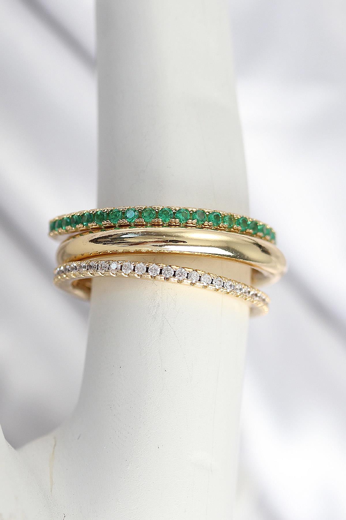 Pirinç Gold Renk Zirkon Taşlı 4'Lü Kadın Yüzük