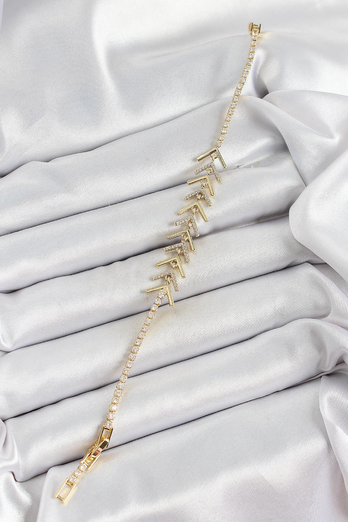 Pirinç Gold Renk Zirkon Taşlı Balık Sırtı Kadın Bileklik