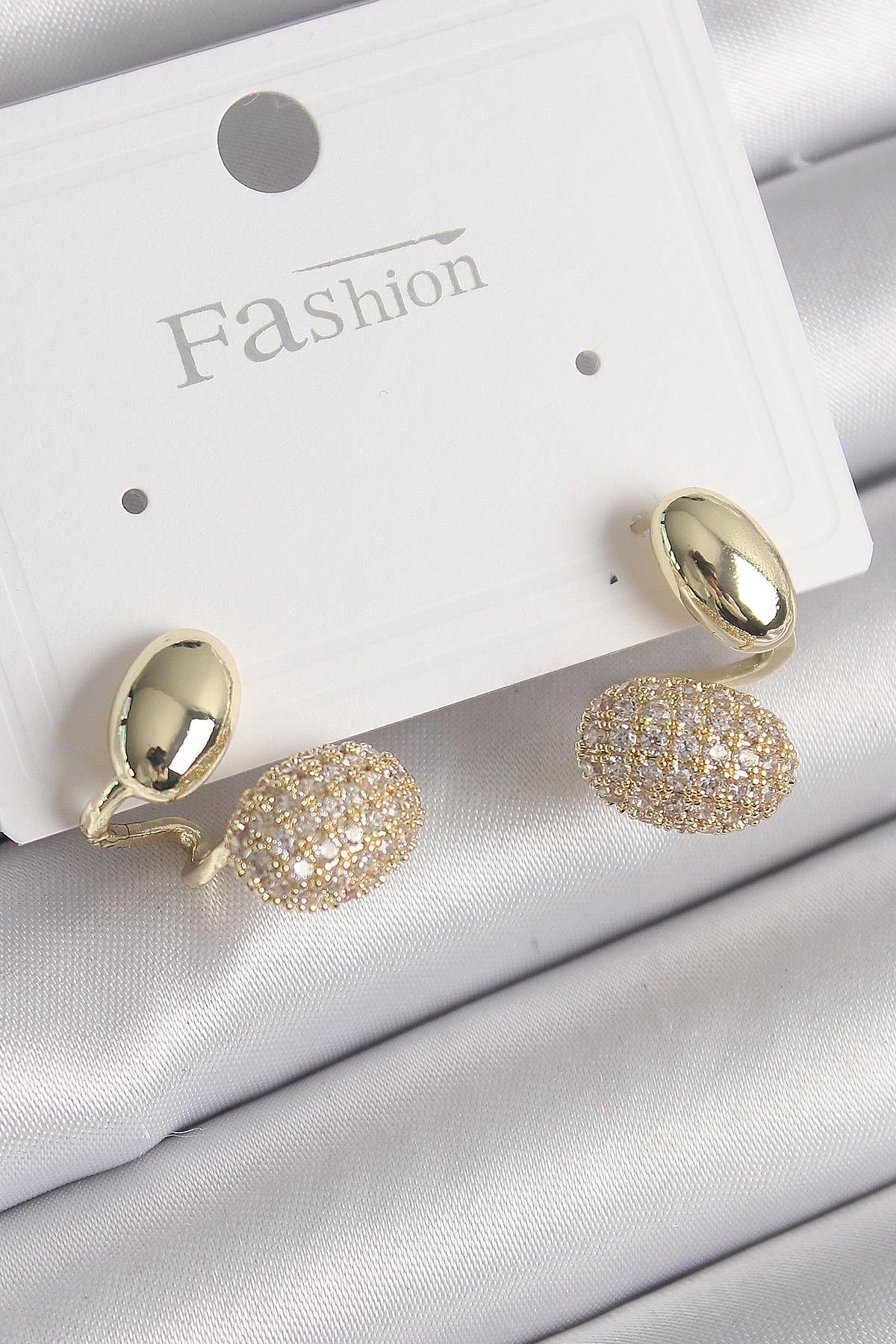 Pirinç Gold Renk Zirkon Taşlı Bombeli Model Kadın Küpe