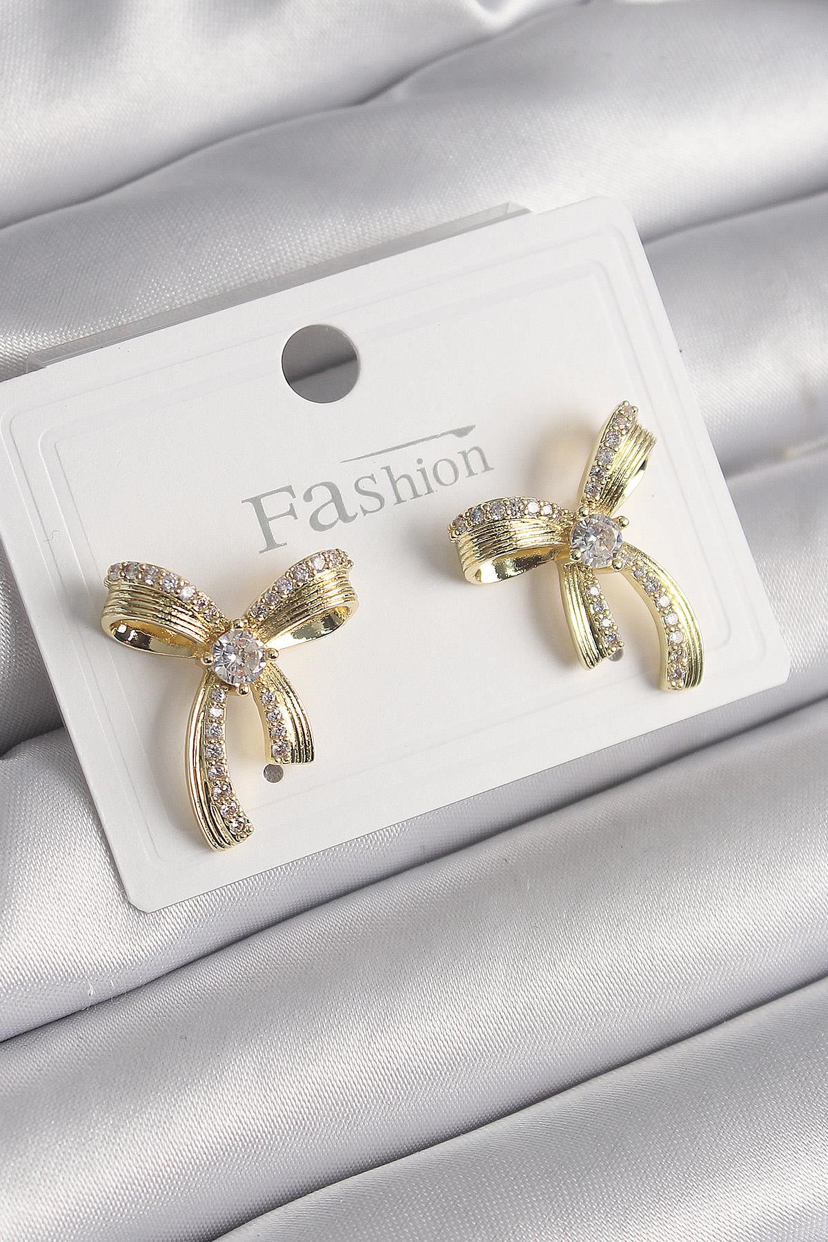 Pirinç Gold Renk Zirkon Taşlı Fiyonk Model Kadın Küpe