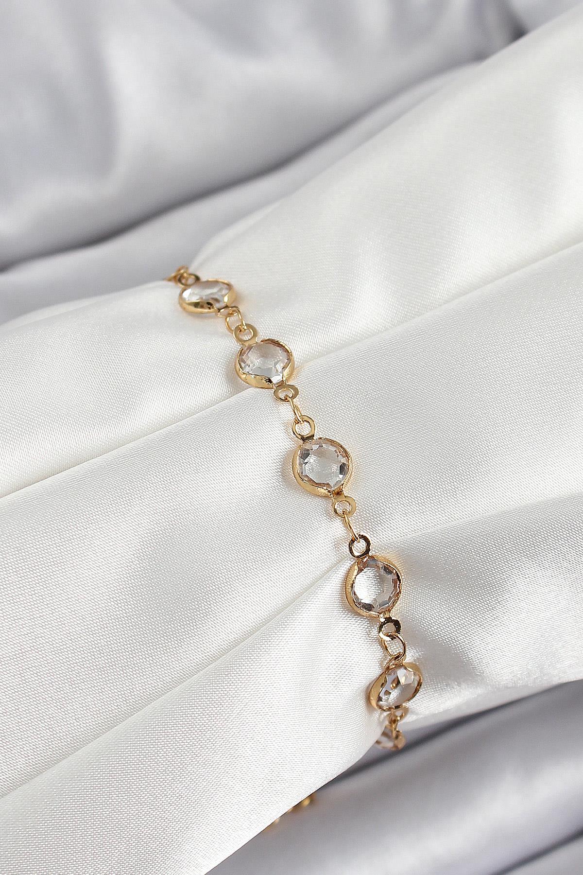 Pirinç Gold Renk Zirkon Taşlı Kadın Bileklik
