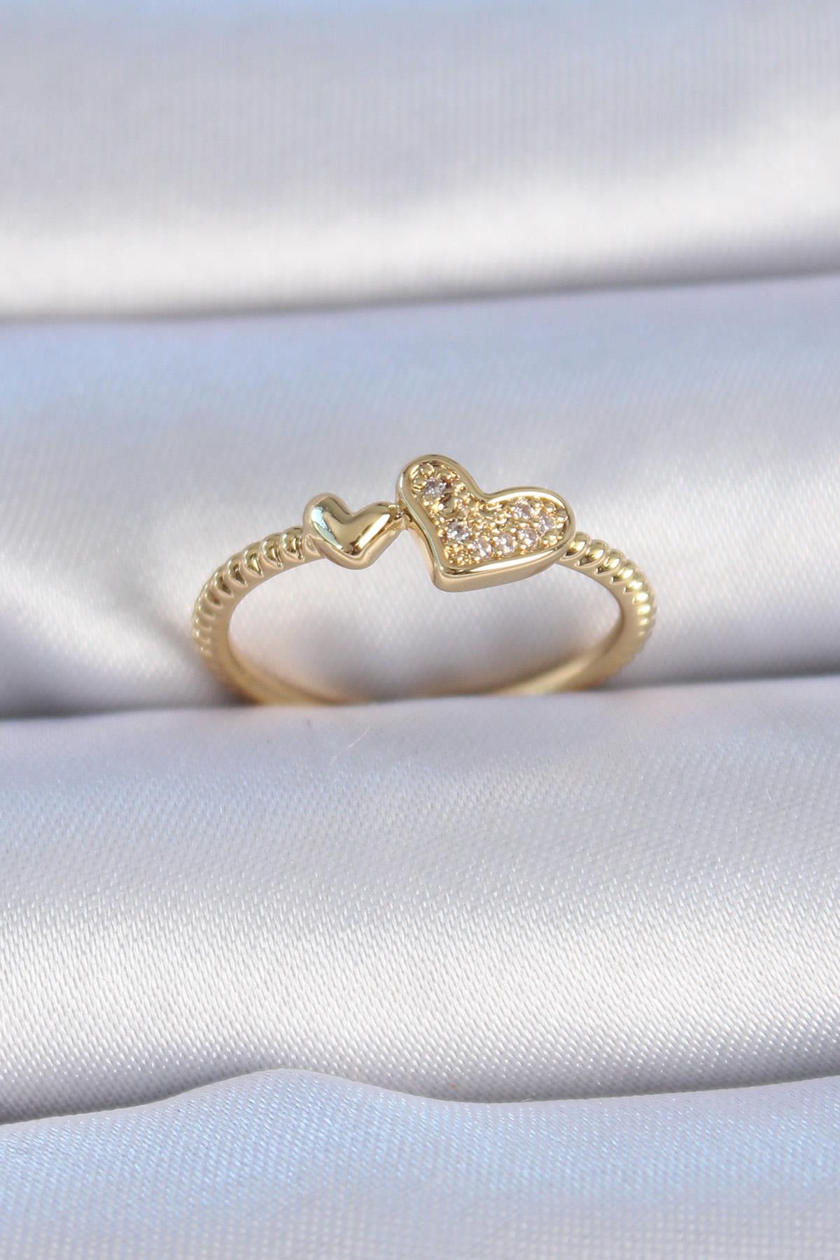 Pirinç Gold Renk Zirkon Taşlı Kalp Model Kadın Yüzük