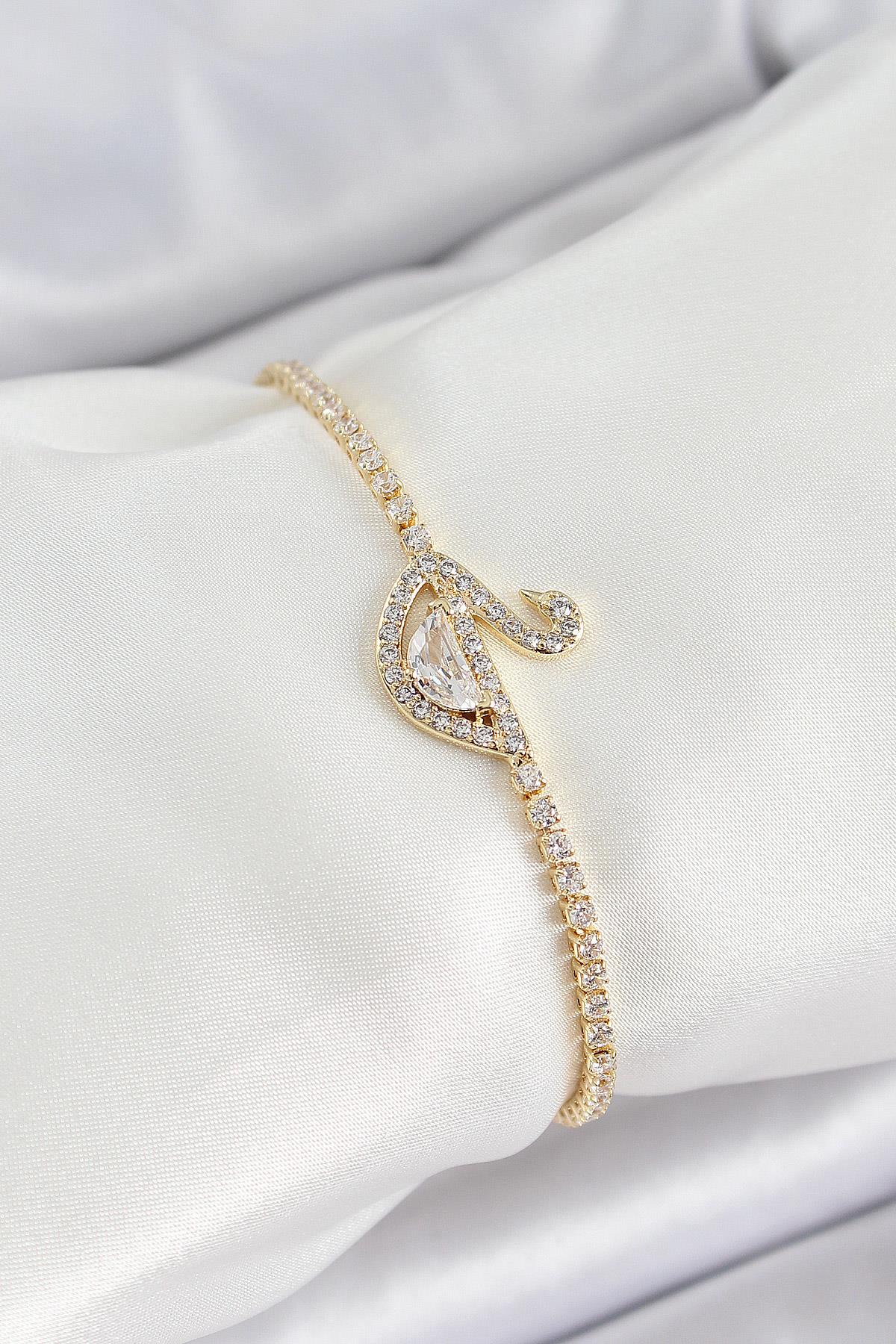 Pirinç Gold Renk Zirkon Taşlı Kuğu Model Kadın Bileklik