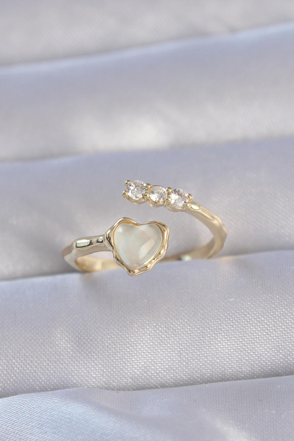 Pirinç Gold Renk Zirkon Taşlı Sedefli Kalp Model Ayarlanabilir Yüzük