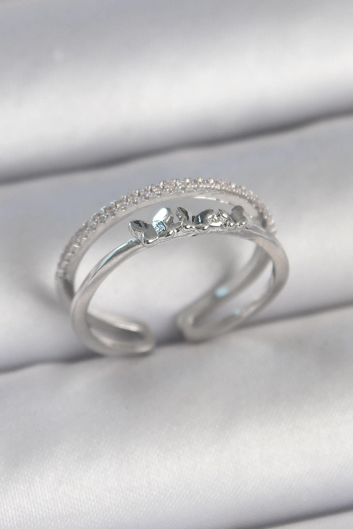 Pirinç Gümüş Renk 2'Li Zirkon Taş Detaylı Kelebek Figür Ayarlanabilir Model Kadın Yüzük