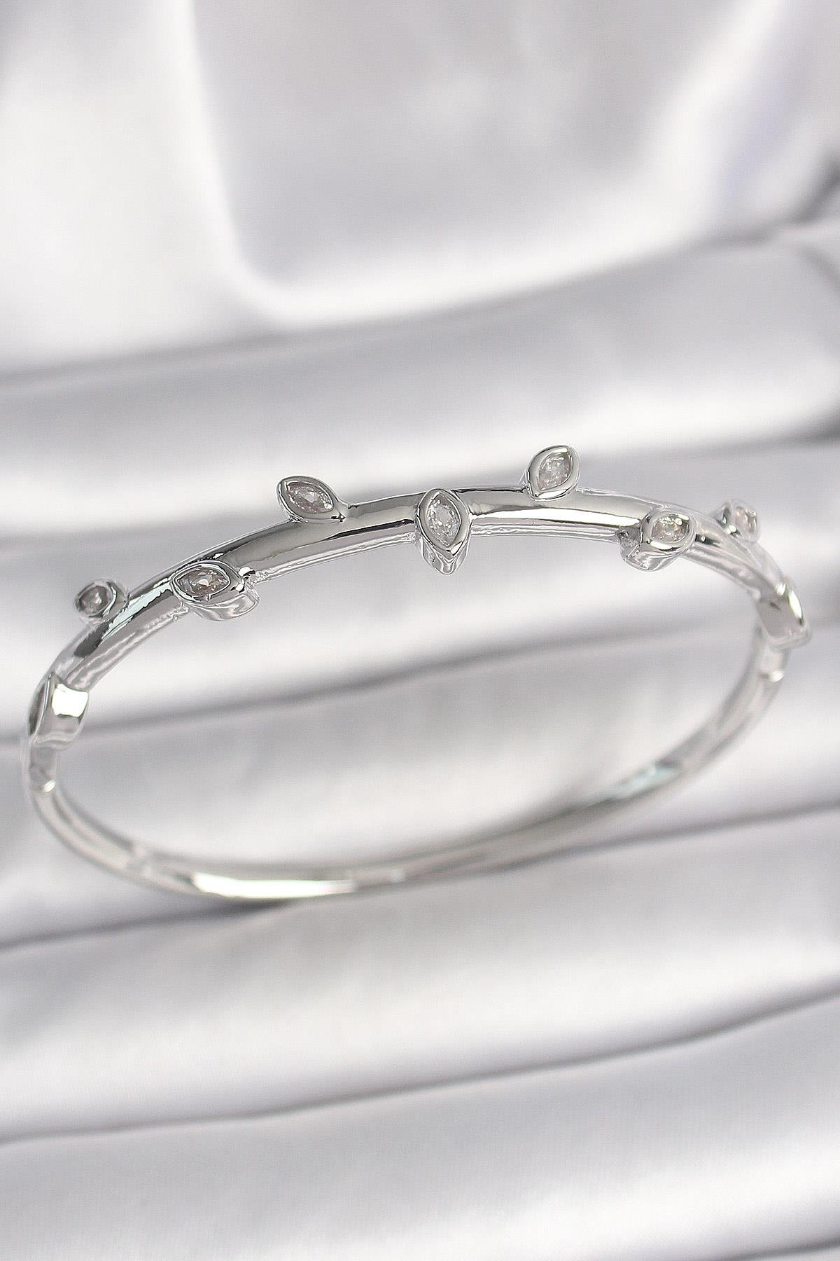 Pirinç Gümüş Renk Damla Zirkon Taşlı Kadın Kelepçe