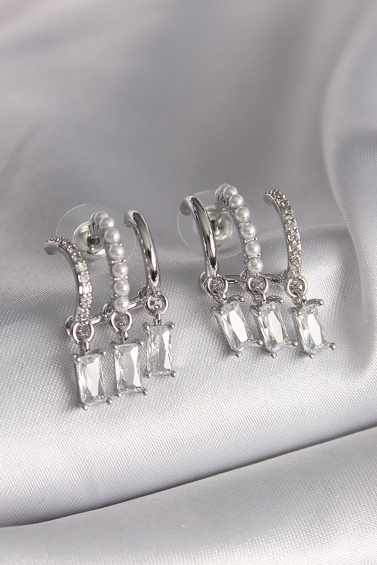 Pirinç Gümüş Renk İnci Detay Sallantı Zirkon Taşlı Kadın Küpe