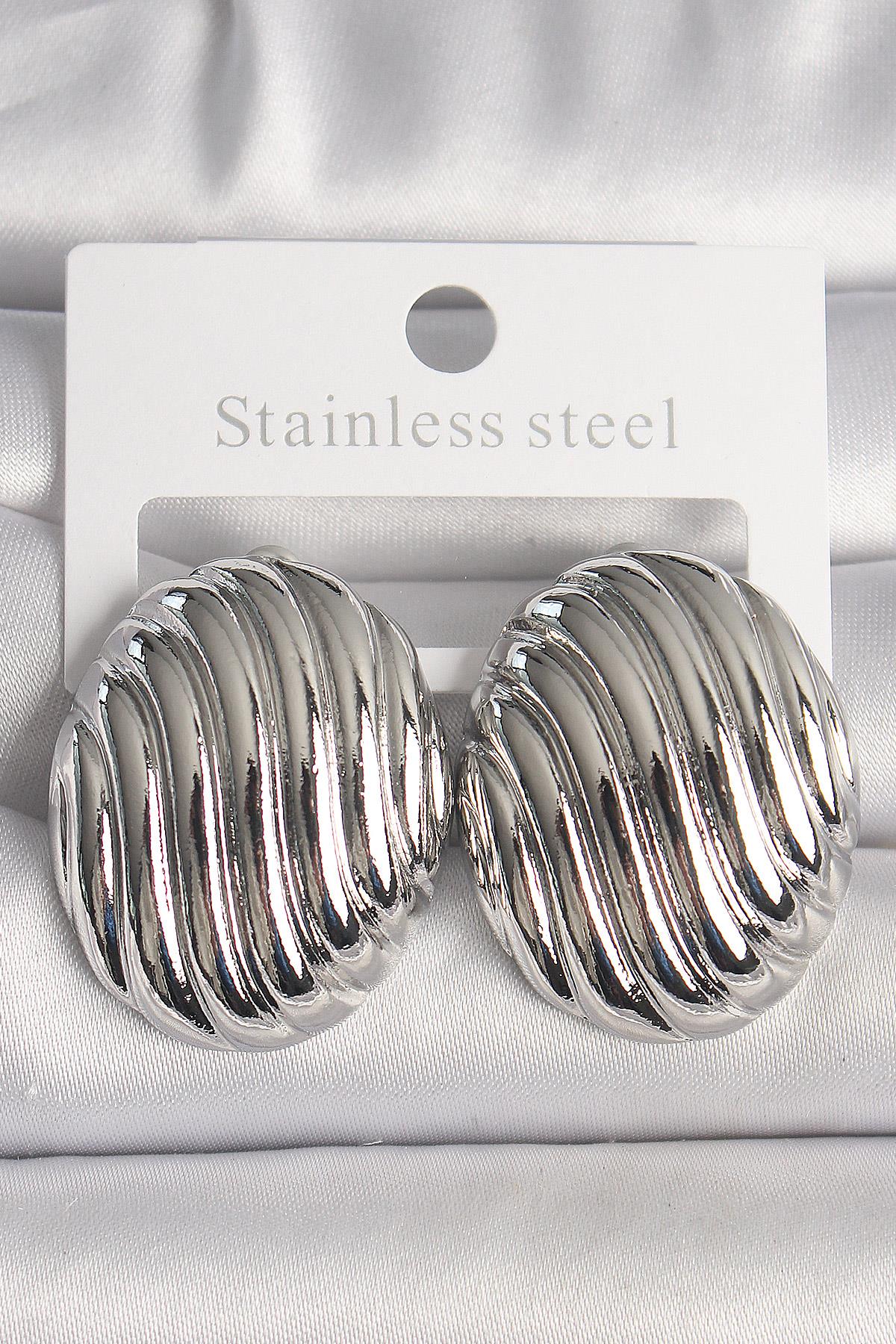 Pirinç Gümüş Renk İşlemeli Oval Model Kadın Küpe
