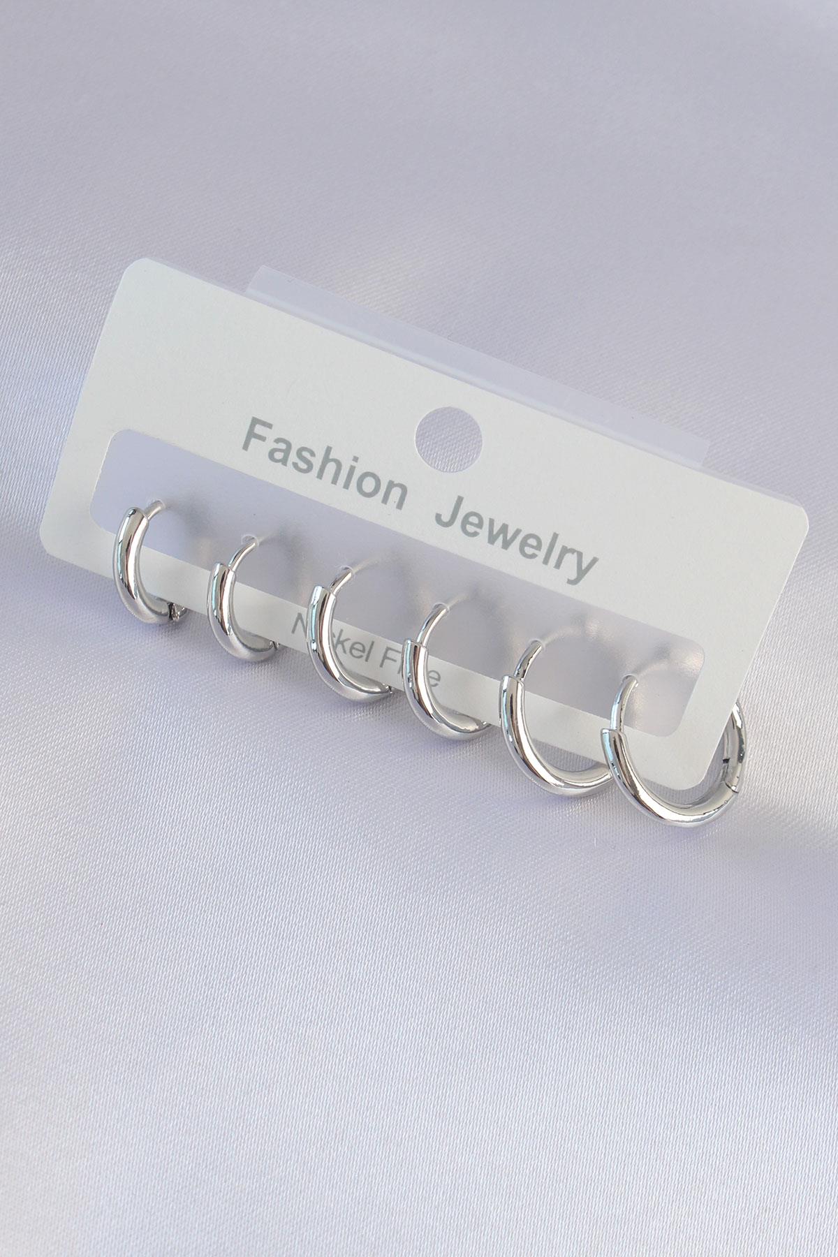 Pirinç Gümüş Renk Oval Küpe Seti