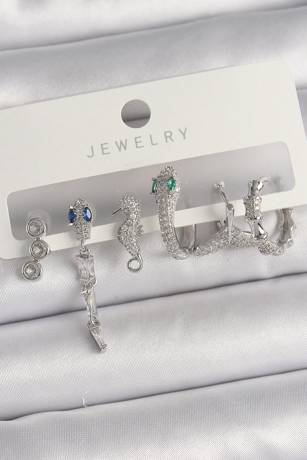 Pirinç Gümüş Renk Sallantı Zirkon Taşlı Yılan Model Kadın Küpe Seti