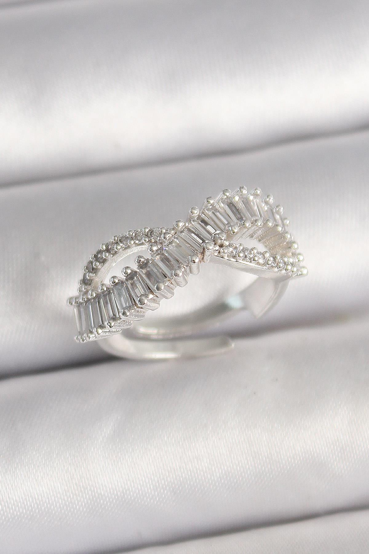 Pirinç Gümüş Renk Su Yolu Zirkon Taşlı Sonsuzluk Model Ayarlanabilir Kadın Yüzük