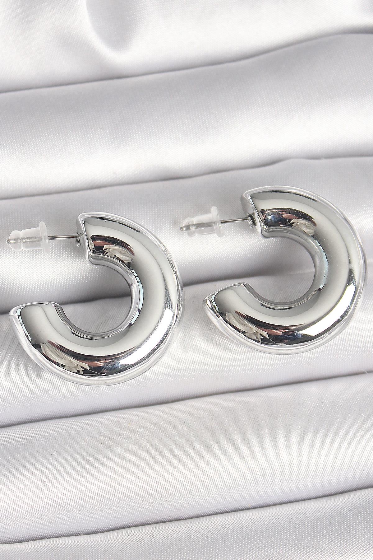 Pirinç Gümüş Renk Yarım Halka Model CCB Kadın Küpe