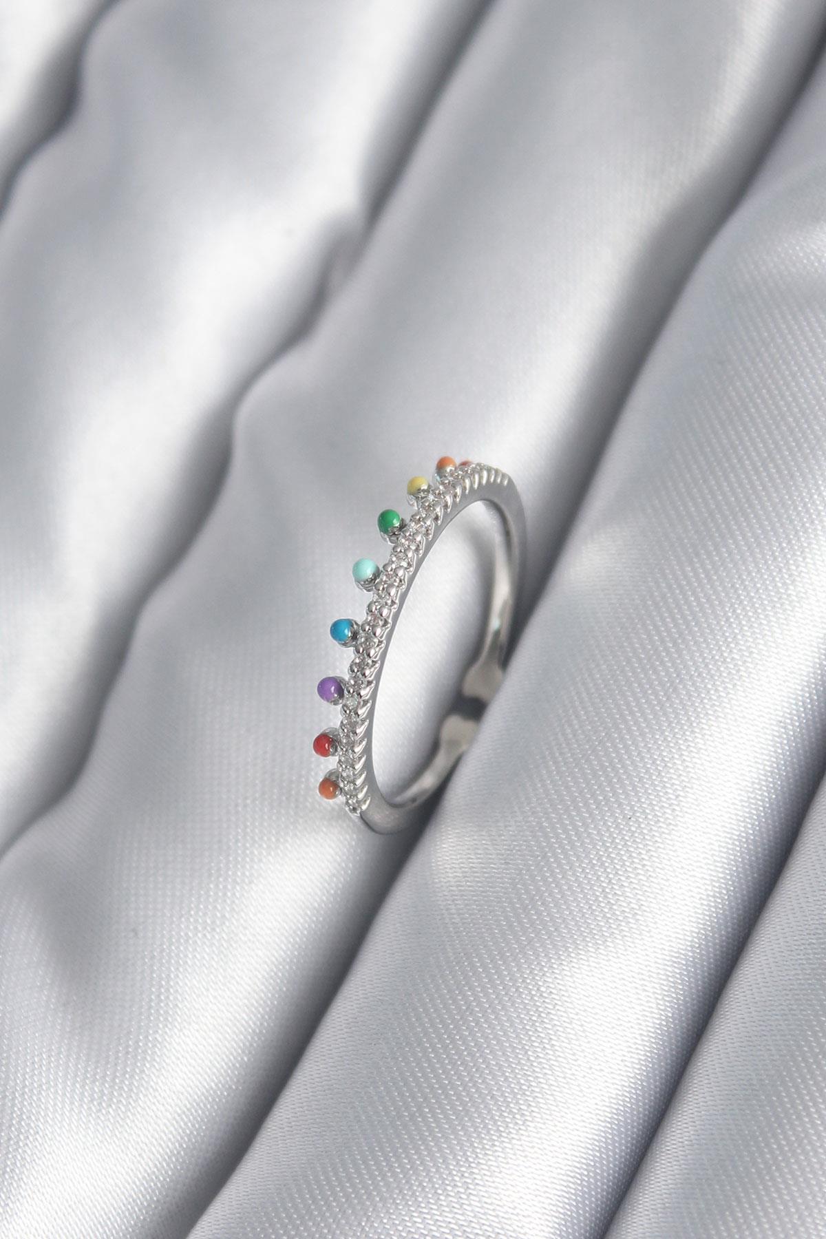 Pirinç Gümüş Renk Zirkon Taş Detay Kadın Yüzük