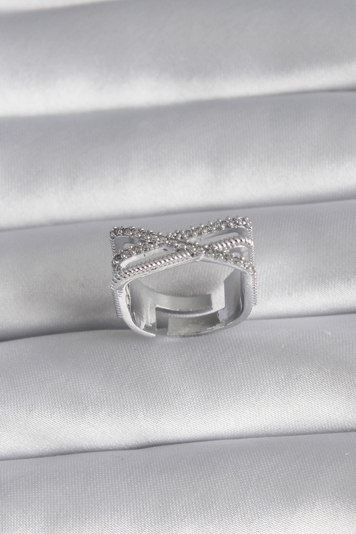 Pirinç Gümüş Renk Zirkon Taş Detay Kadın Yüzük