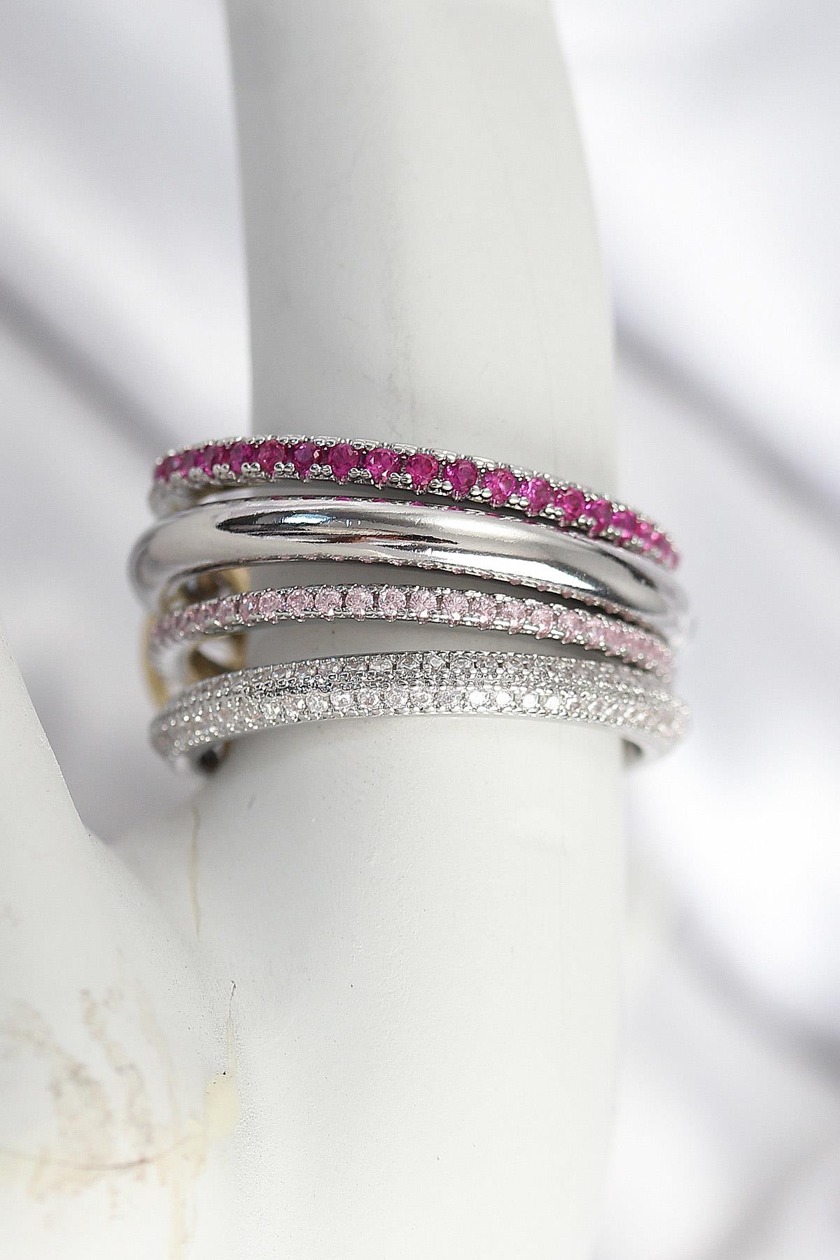 Pirinç Gümüş Renk Zirkon Taşlı 4'Lü Kadın Yüzük