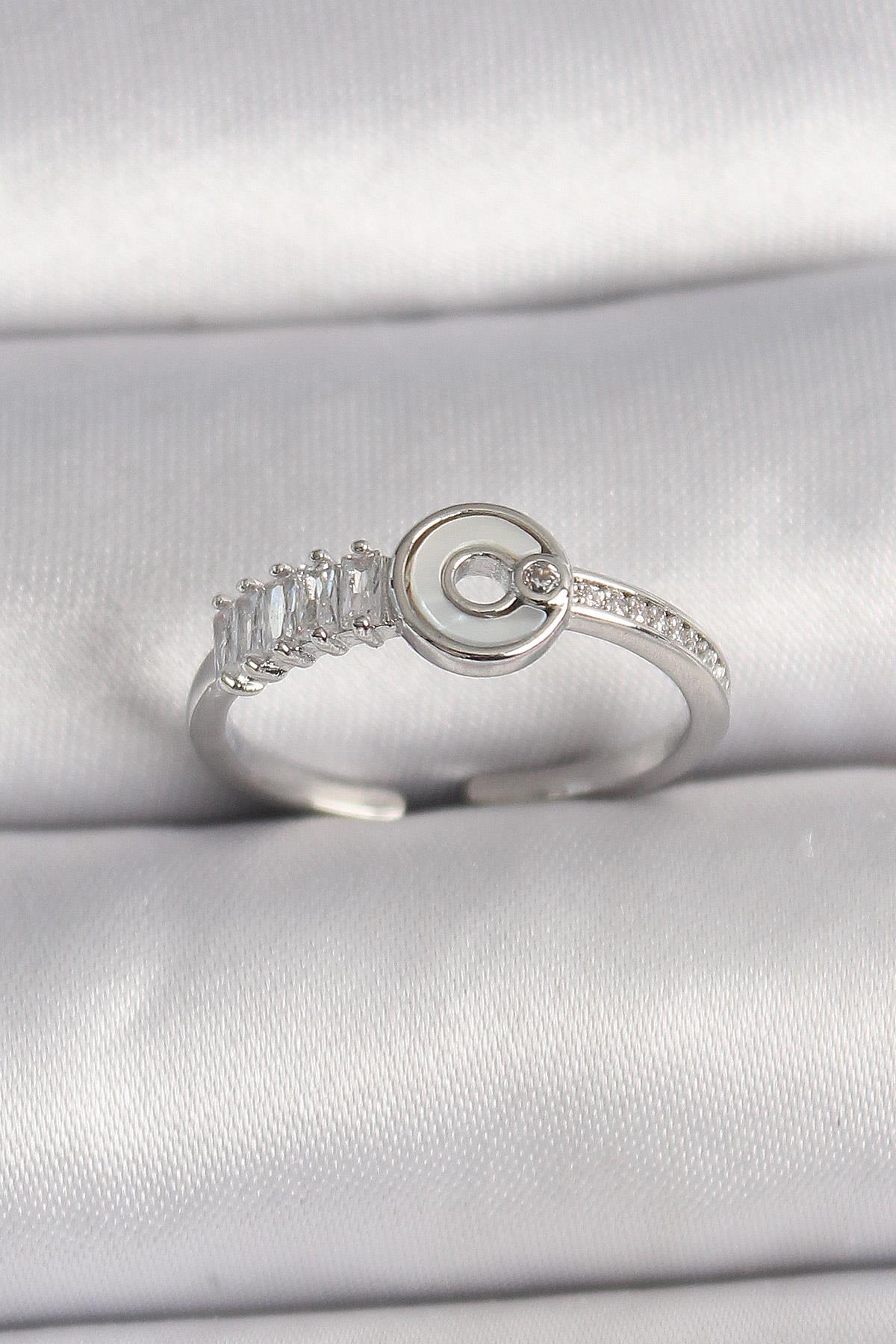Pirinç Gümüş Renk Zirkon Taşlı Ayarlanabilir Kadın Yüzük