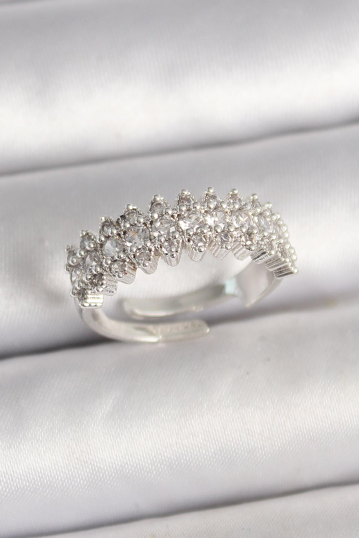 Pirinç Gümüş Renk Zirkon Taşlı Ayarlanabilir Kadın Yüzük