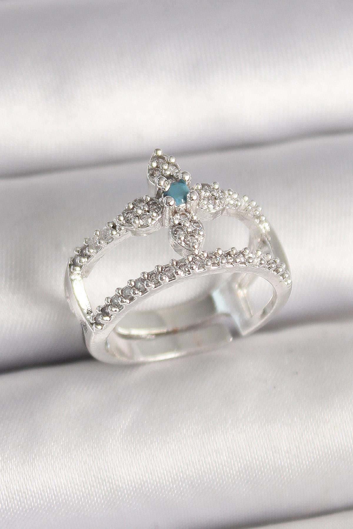 Pirinç Gümüş Renk Zirkon Taşlı Ayarlanabilir Model Kadın Yüzük