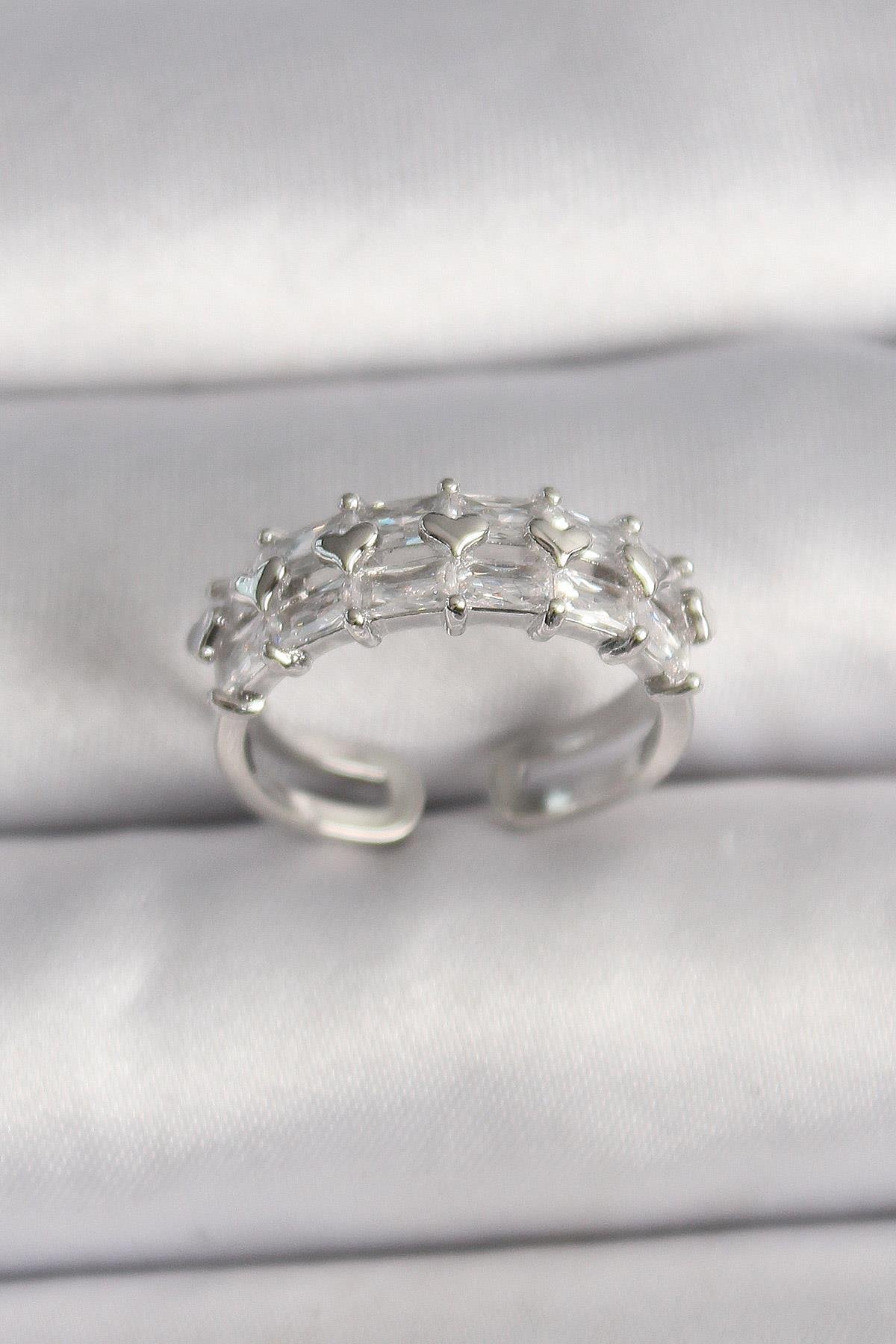 Pirinç Gümüş Renk Zirkon Taşlı Ayarlanabilir Yüzük