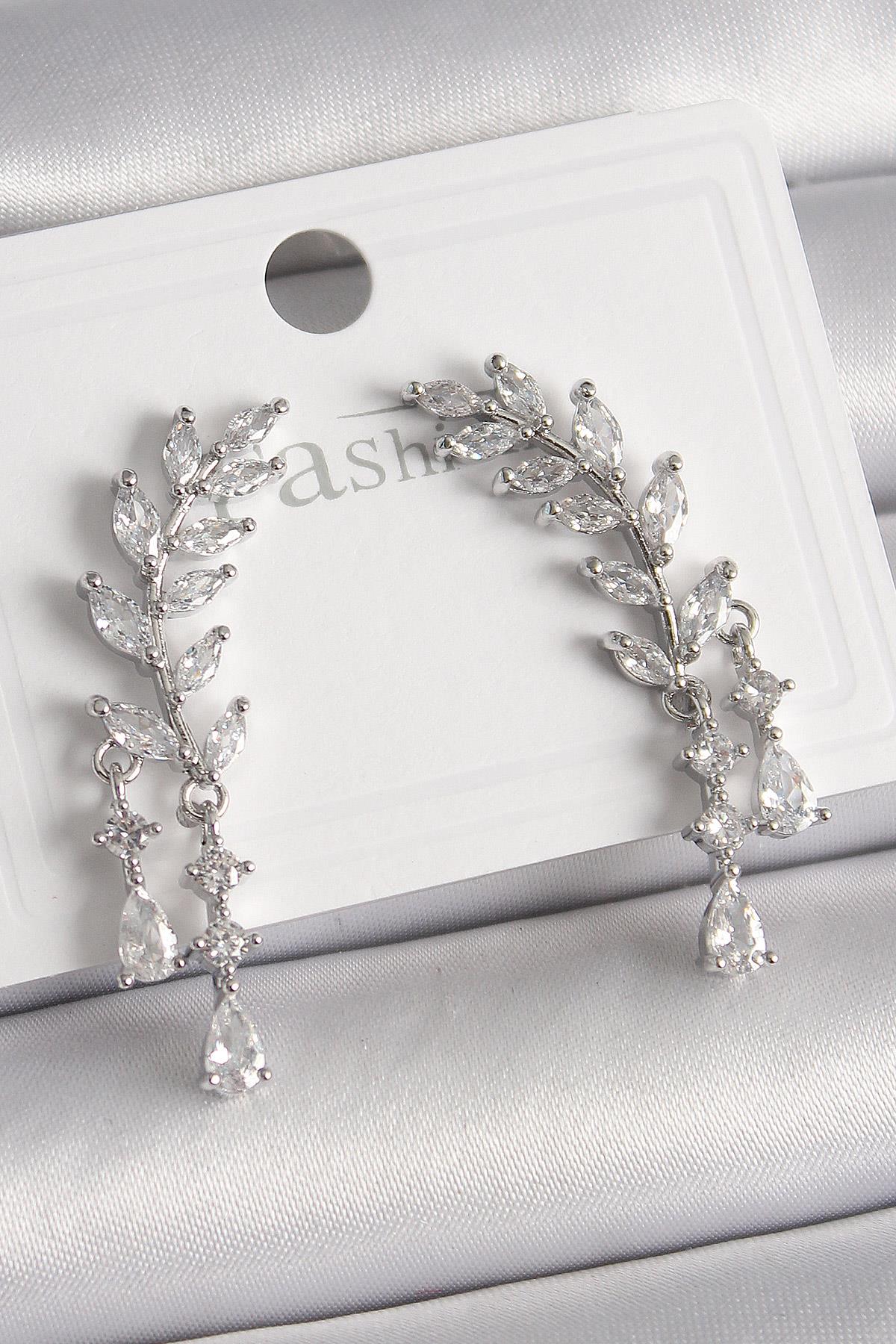 Pirinç Gümüş Renk Zirkon Taşlı Başak Model Kadın Küpe