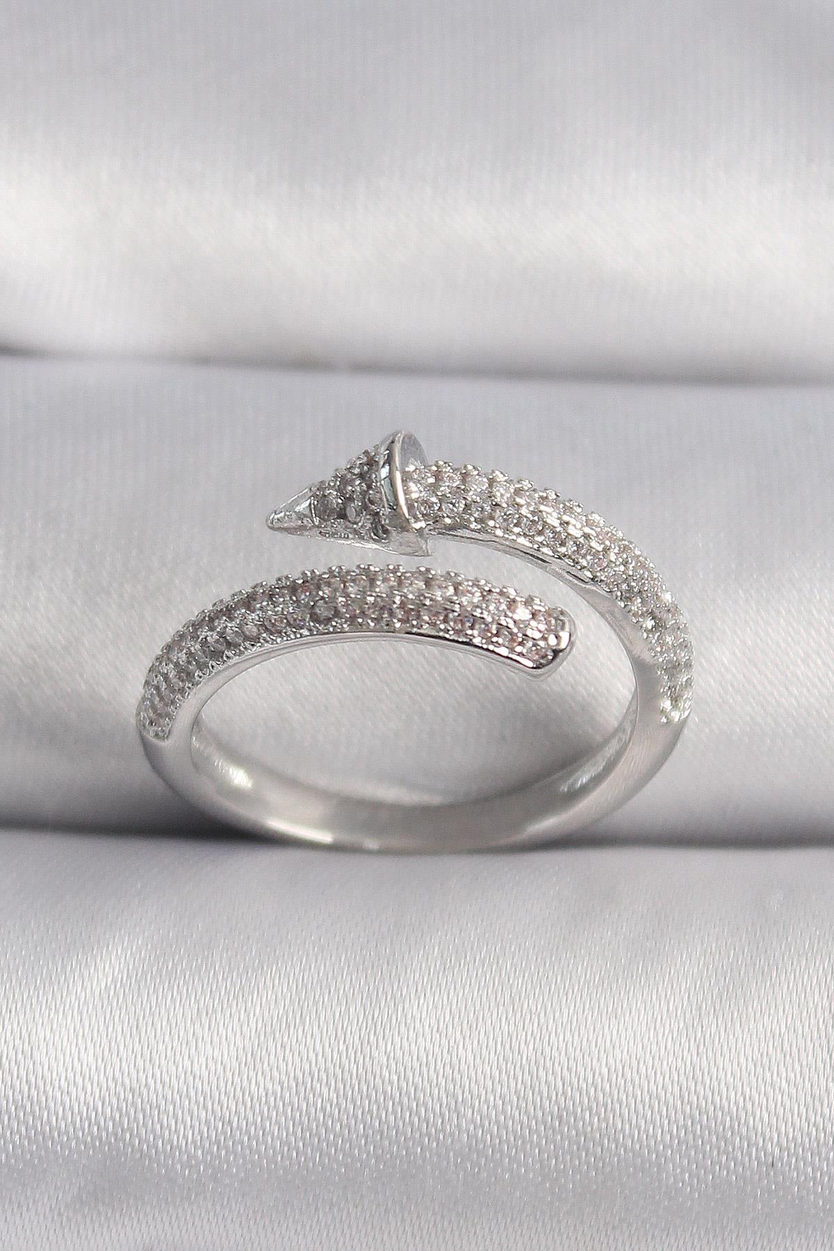 Pirinç Gümüş Renk Zirkon Taşlı Çivi Model VIP Seri Kadın Yüzük