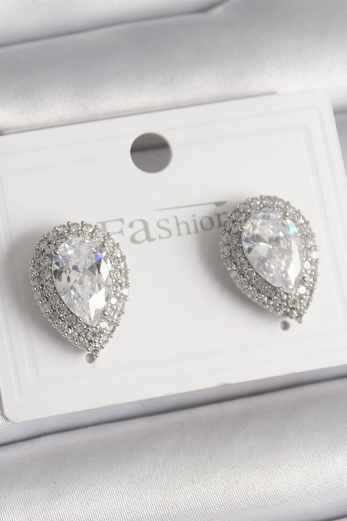 Pirinç Gümüş Renk Zirkon Taşlı Damla Model Kadın Küpe