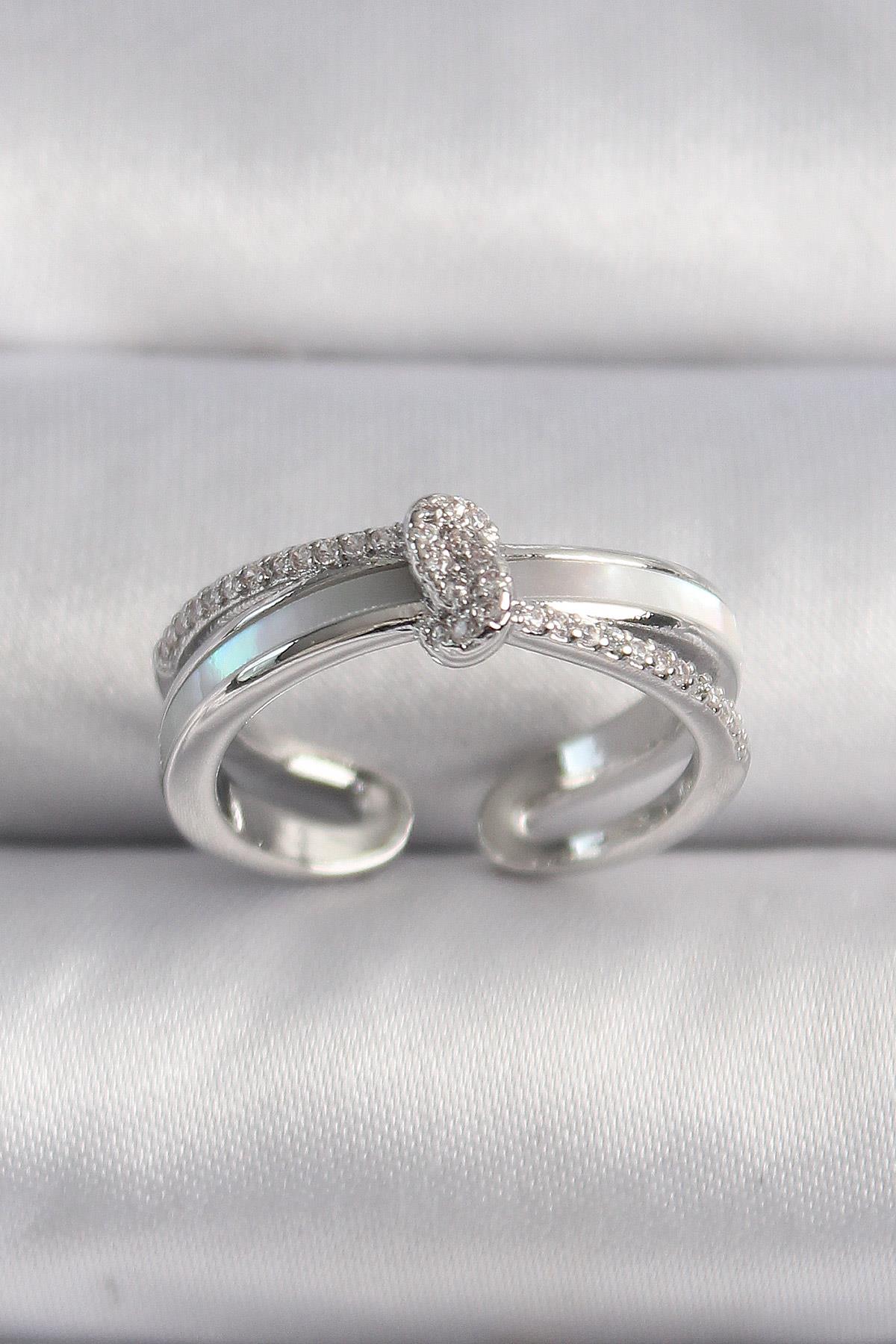 Pirinç Gümüş Renk Zirkon Taşlı Düğüm Model VIP Seri Kadın Yüzük