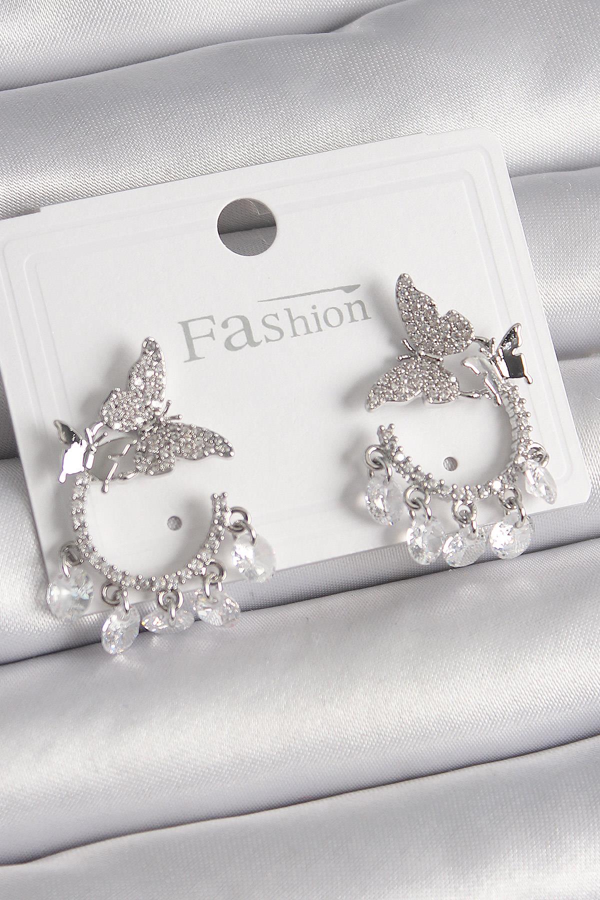Pirinç Gümüş Renk Zirkon Taşlı Sallantı Detay Kelebek Model Kadın Küpe