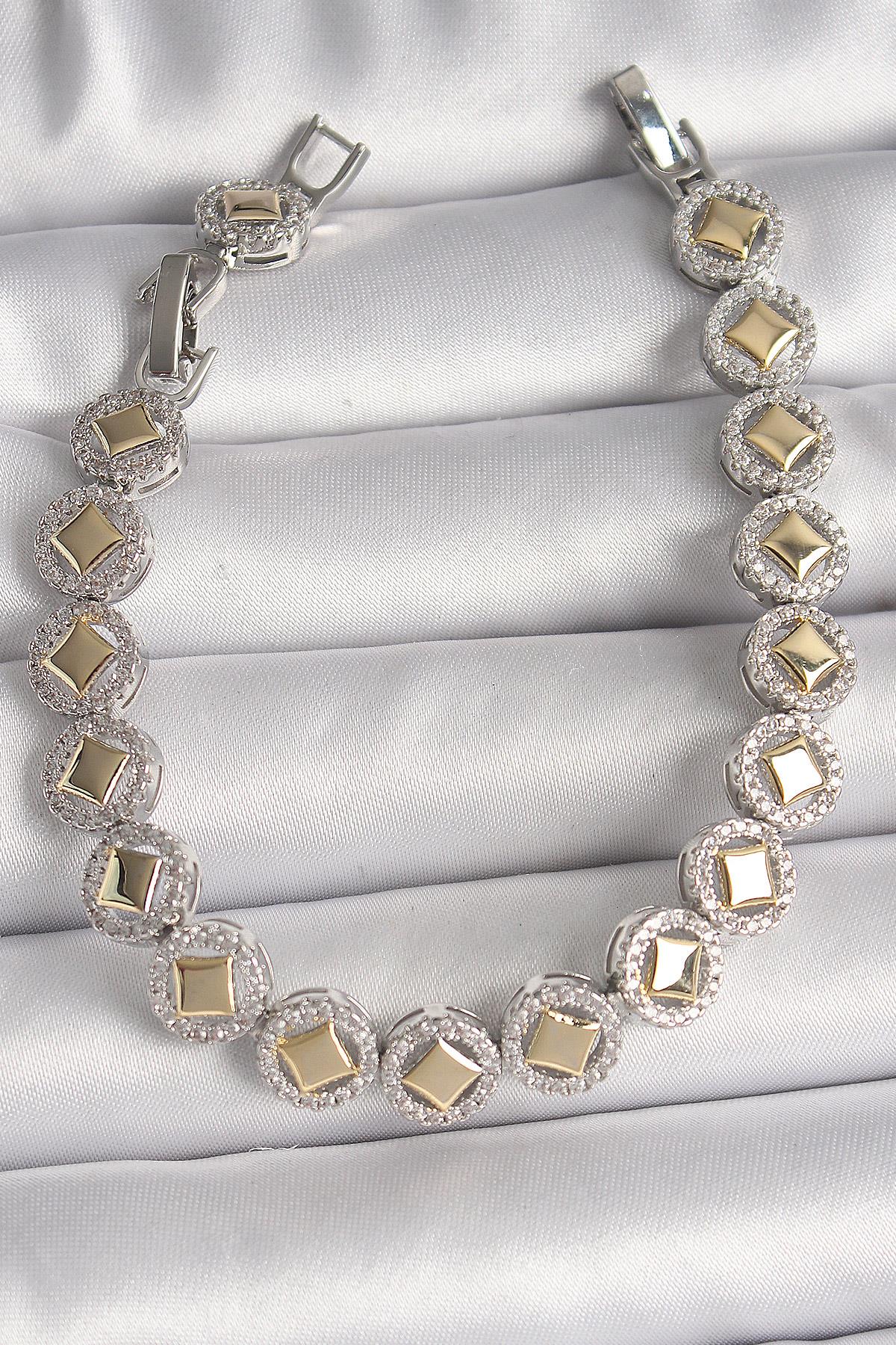 Pirinç Gümüş Renk Zirkon Taşlı Serenay Model VIP Seri Kadın Bileklik