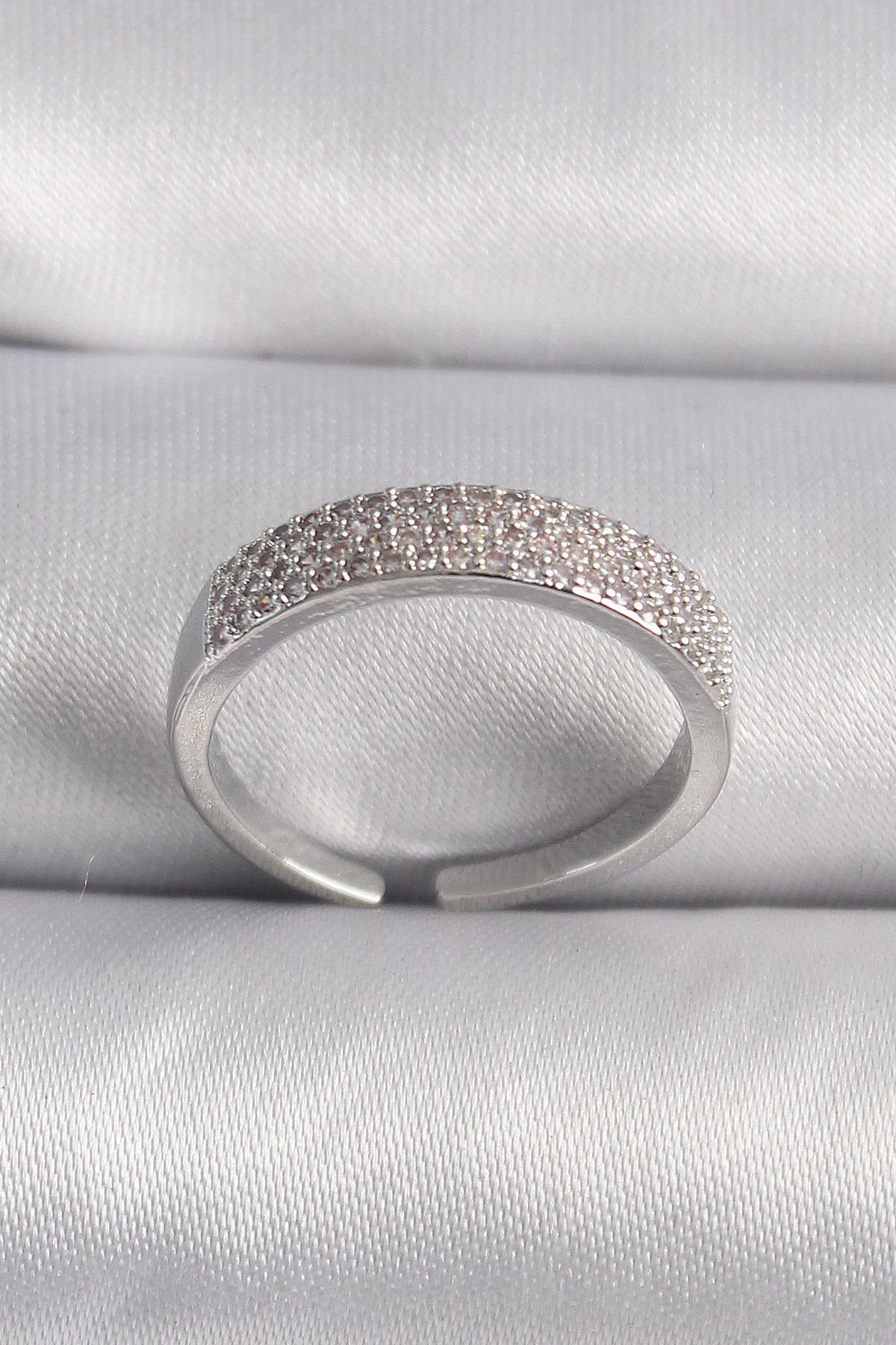 Pirinç Gümüş Renk Zirkon Taşlı VIP Seri Kadın Yüzük