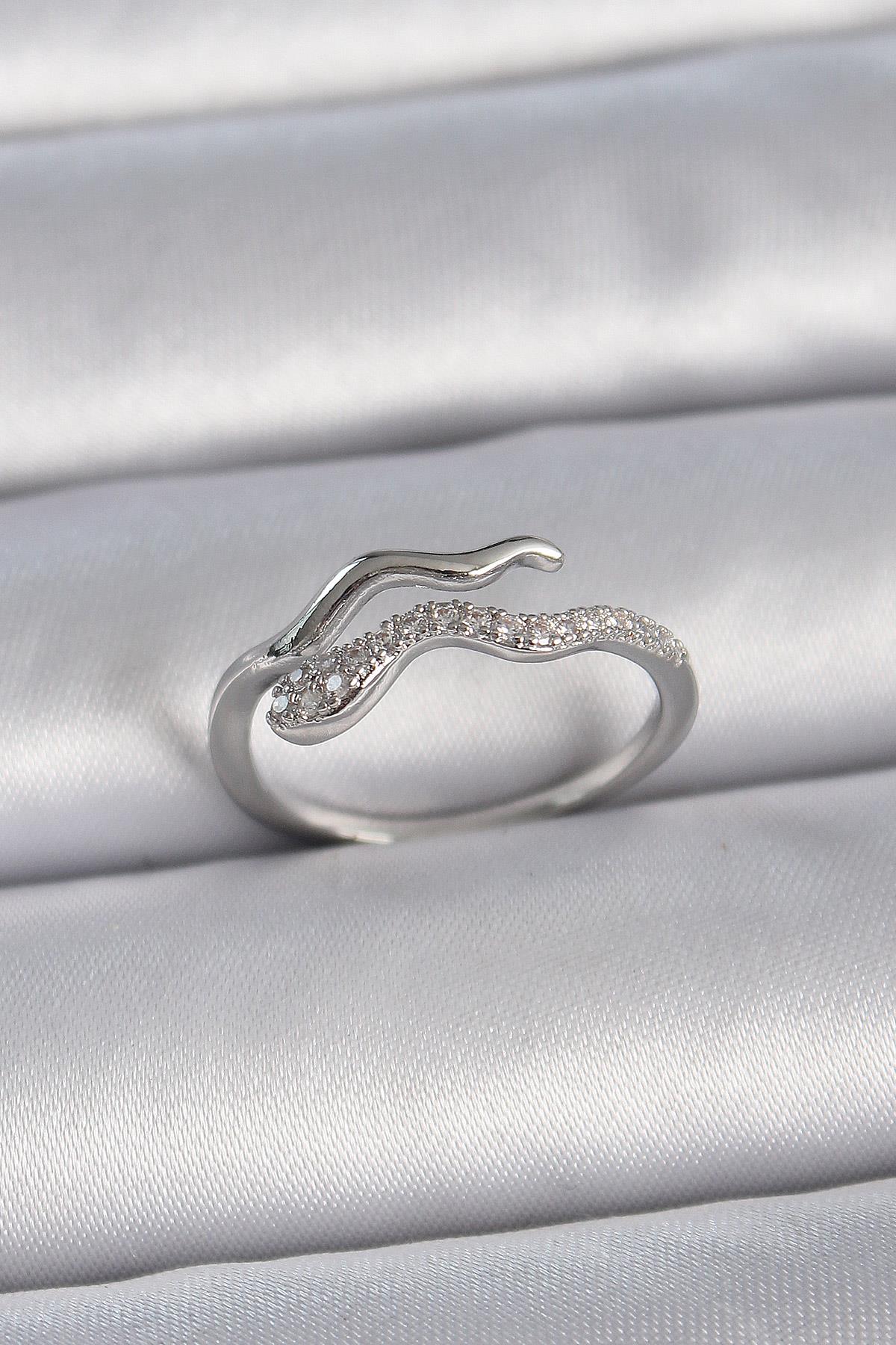 Pirinç Gümüş Renk Zirkon Taşlı Yılan Ayarlanabilir Model Kadın Yüzük