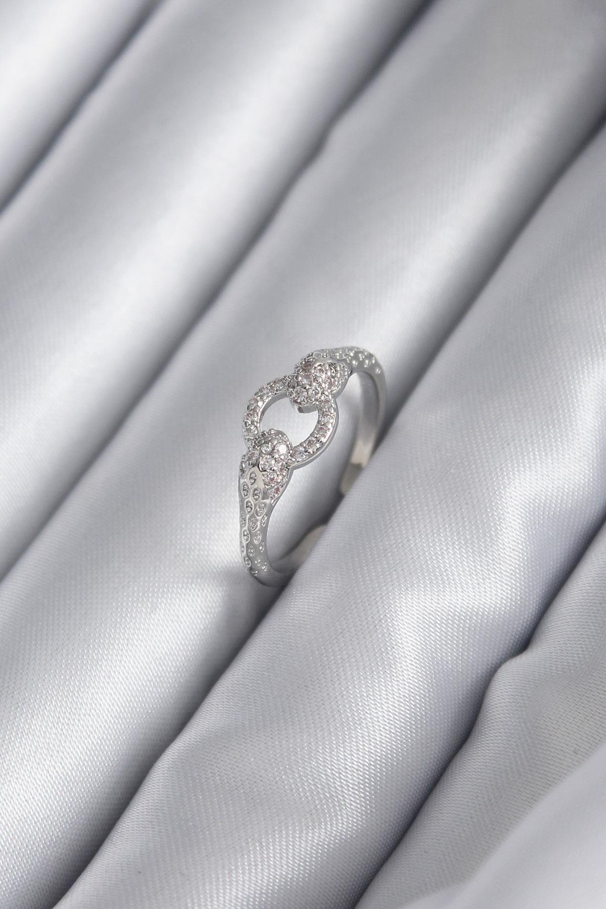 Pirinç Gümüş Renk Zirkon Taşlı Yılan Model Kadın Yüzük