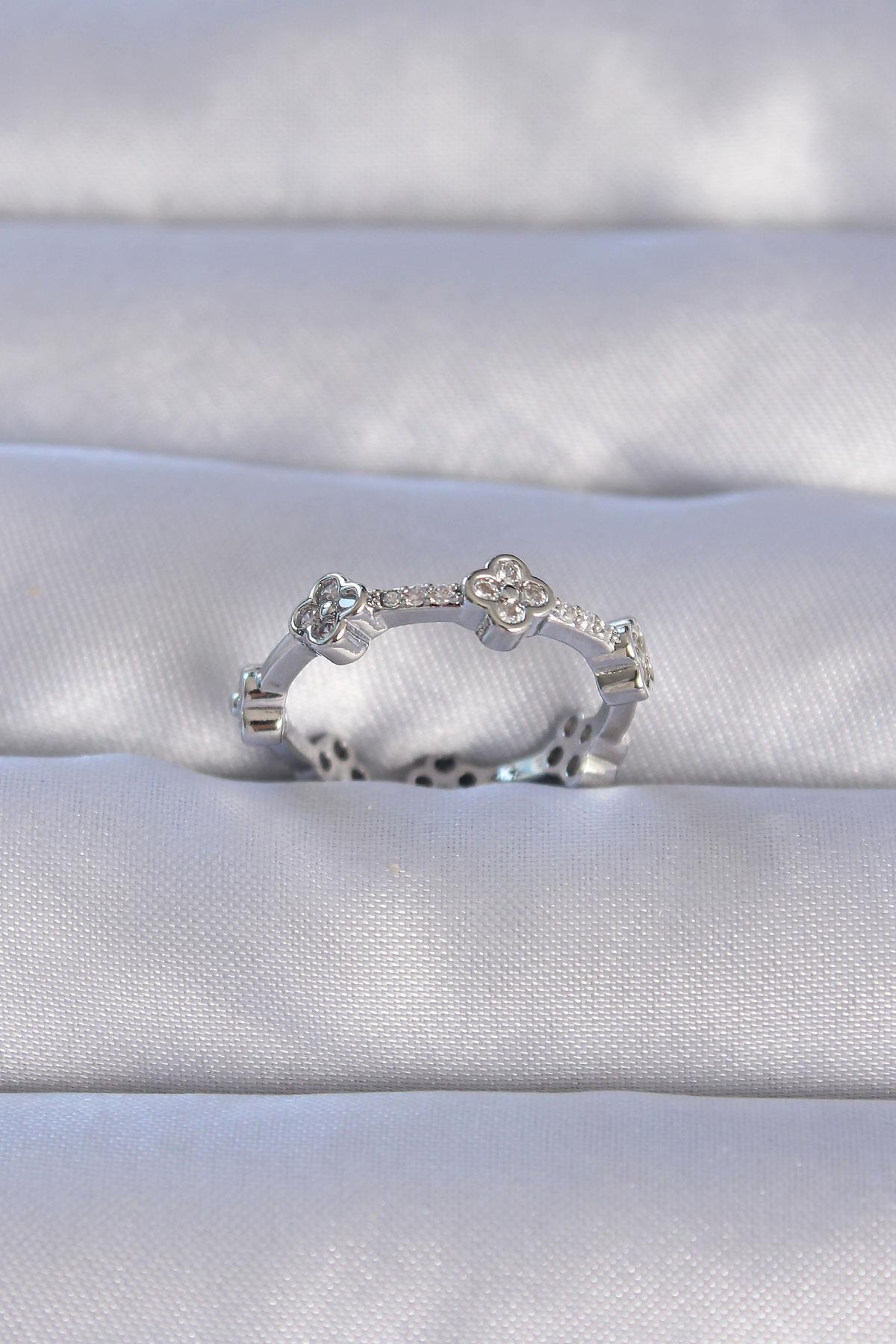 Pirinç Gümüş Renk Zirkon Taşlı Yonca Model Ayarlanabilir Yüzük