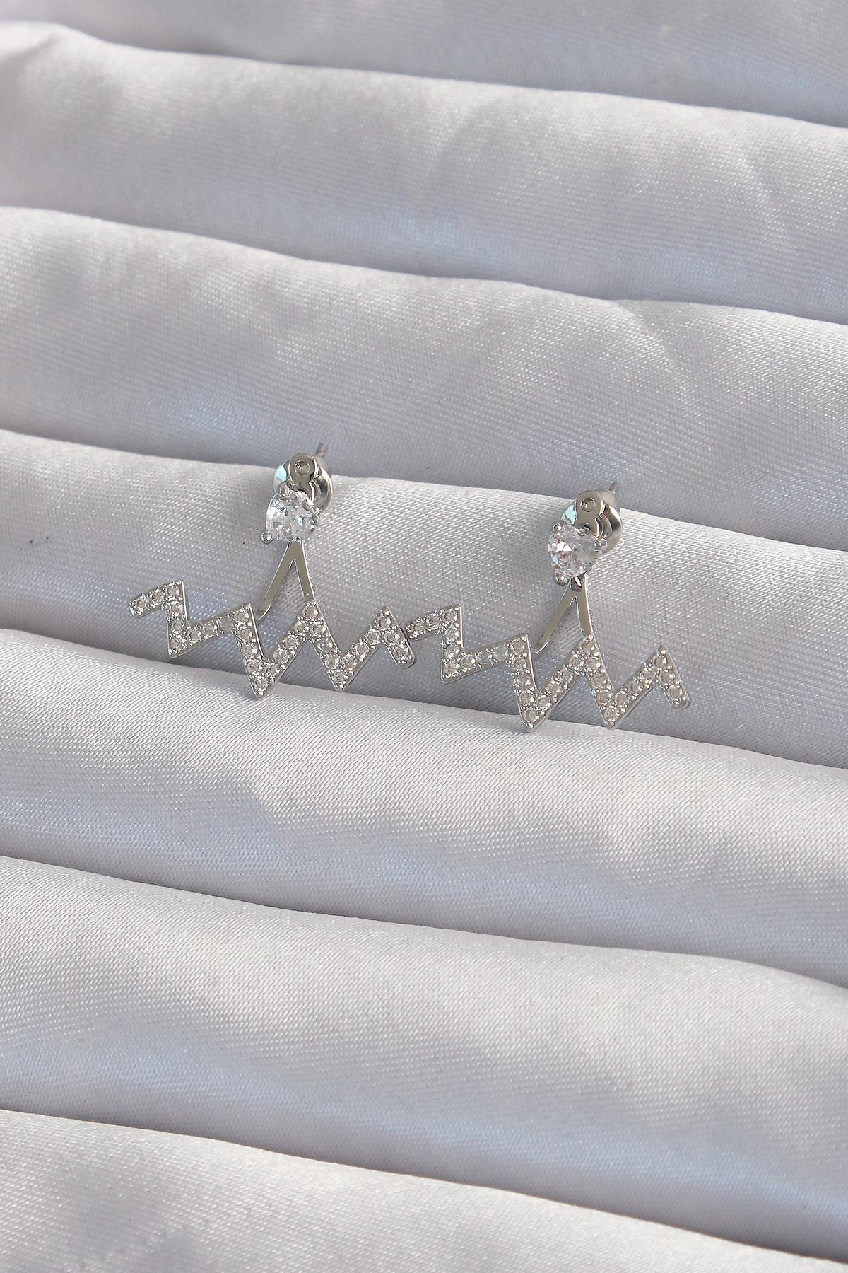 Pirinç Gümüş Renk Zirkon Taşlı Zikzak Küpe