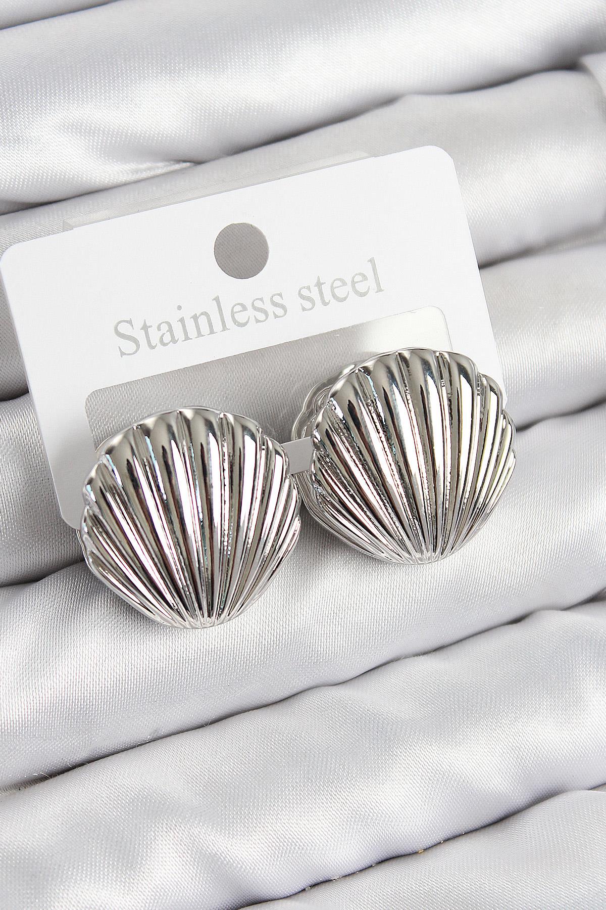 Pirinç İstiridye Model Gümüş Renk Kadın Küpe