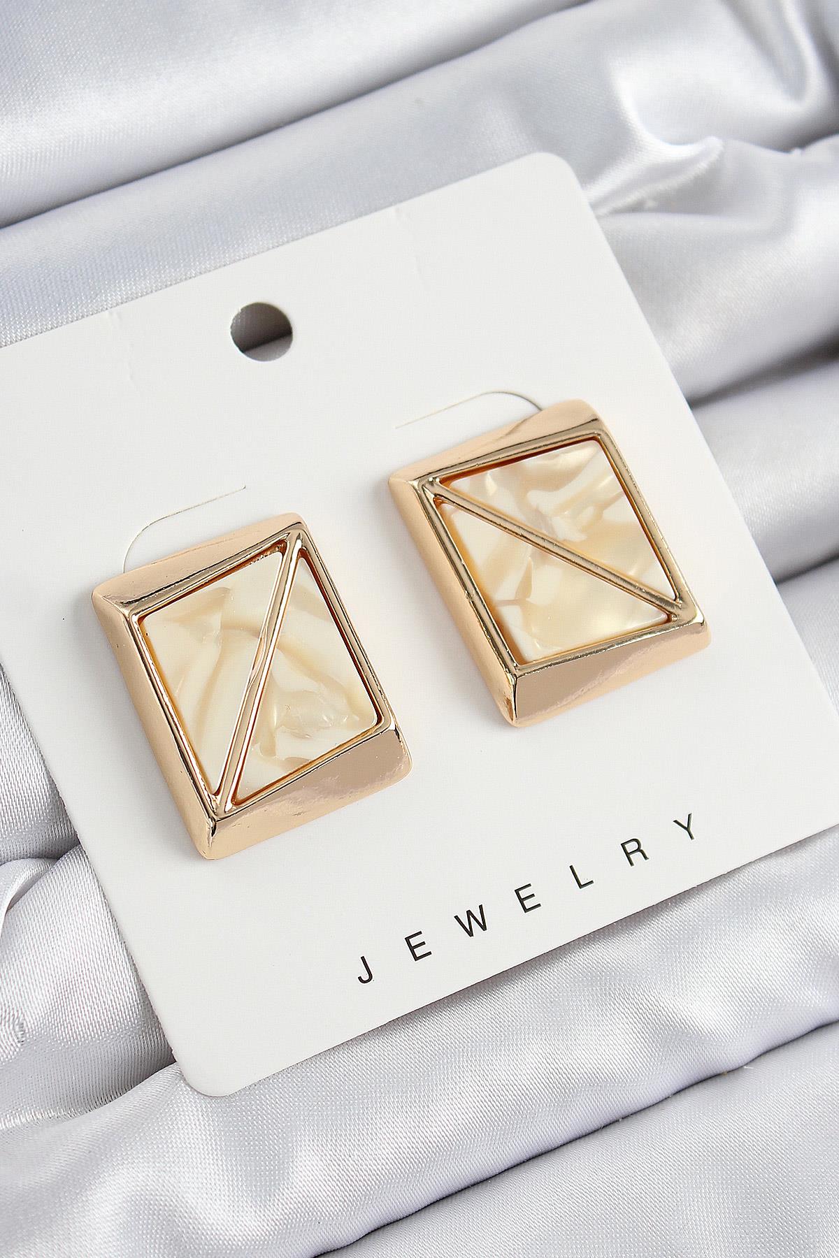 Pirinç Krem Üçgen Kesim Detaylı Kare Model Vintage Gold Renk Kadın Küpe