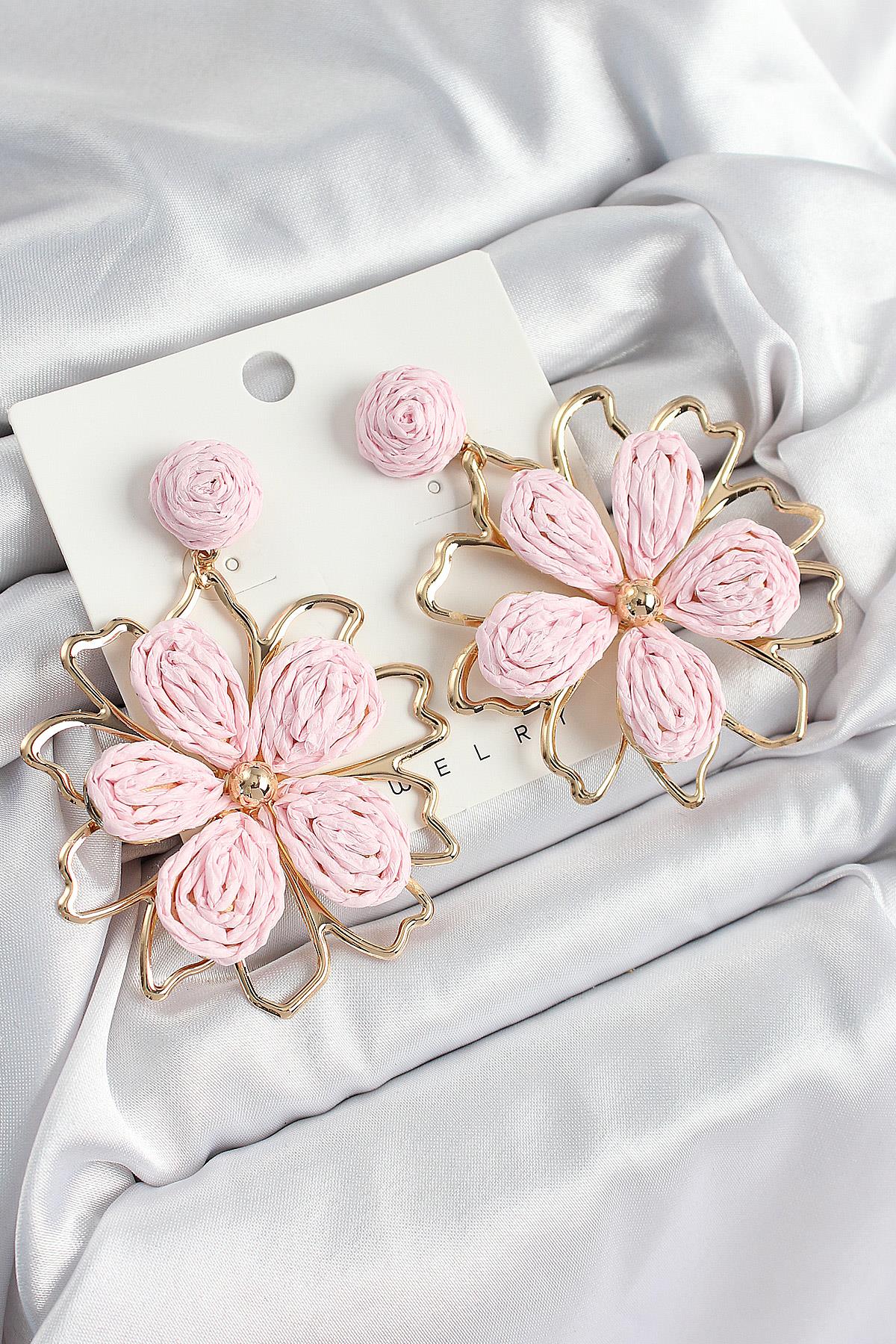 Pirinç Pembe Çiçek Model Gold Renk Kadın Hasır Küpe