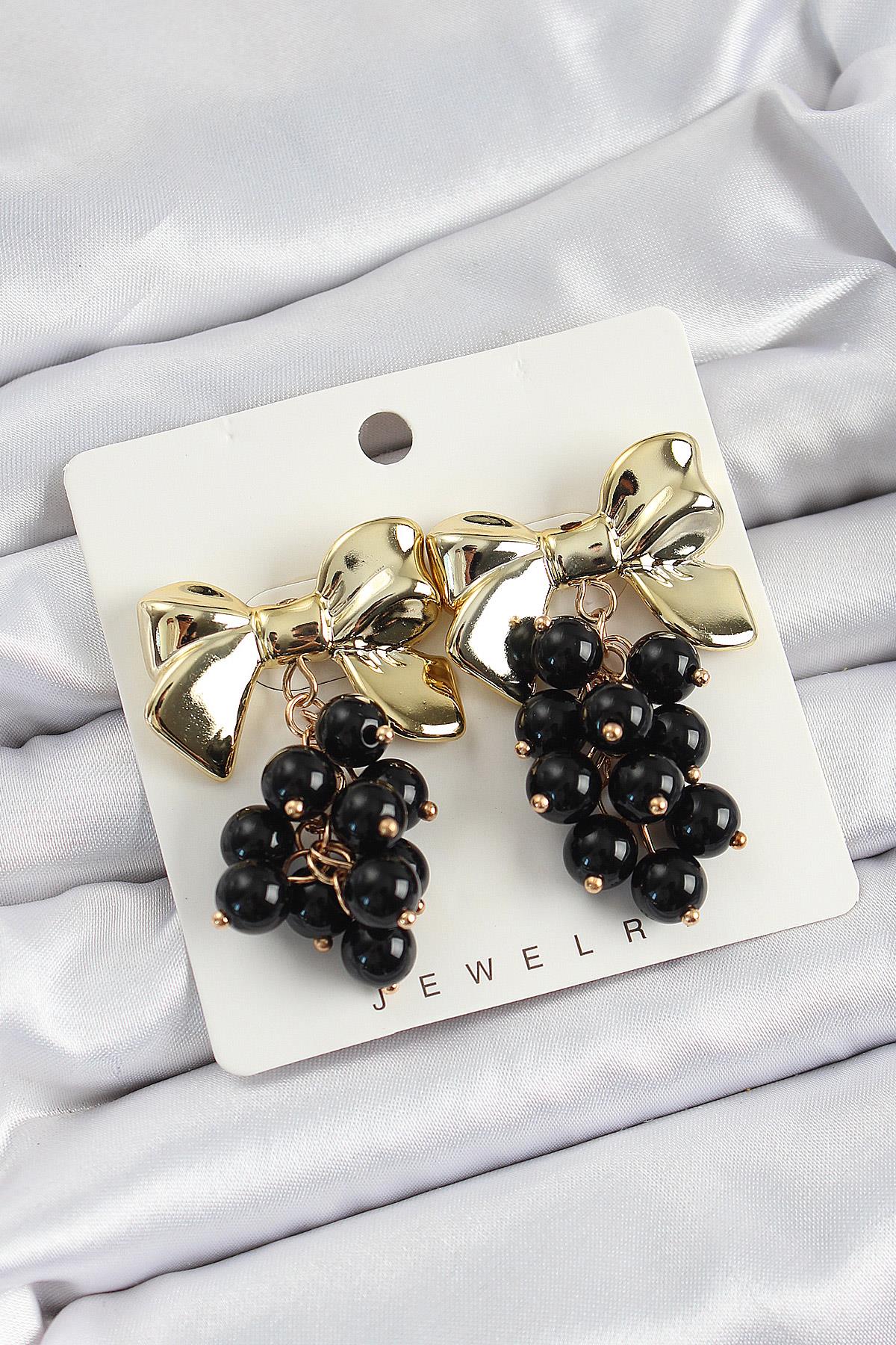 Pirinç Sallantılı Siyah Boncuklu Fiyonk Vintage Model Gold Renk Kadın Küpe
