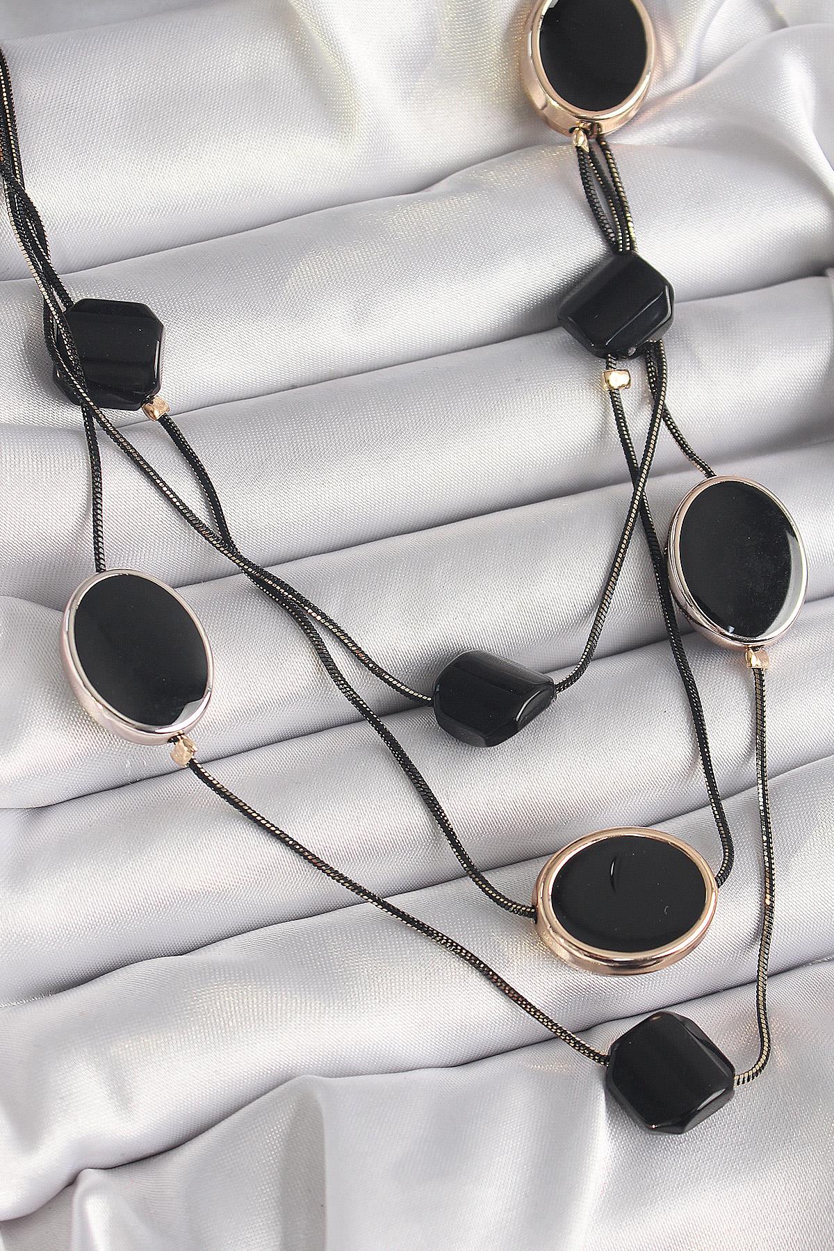 Pirinç Siyah Renk Zincir Kristal Taşlı Kadın Kolye