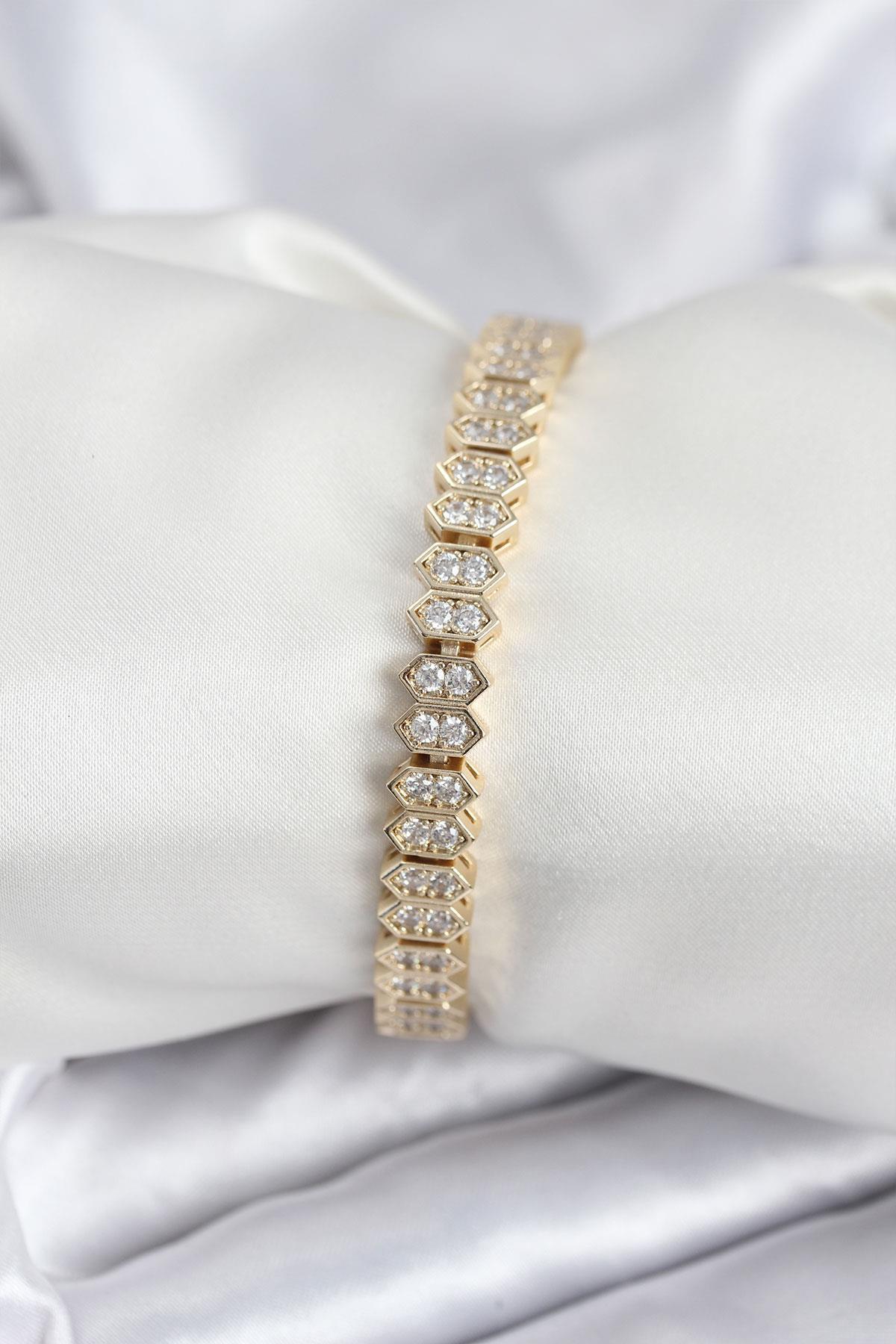 Pirinç VIP Seri Gold Renk Zirkon Taşlı Kadın Bileklik