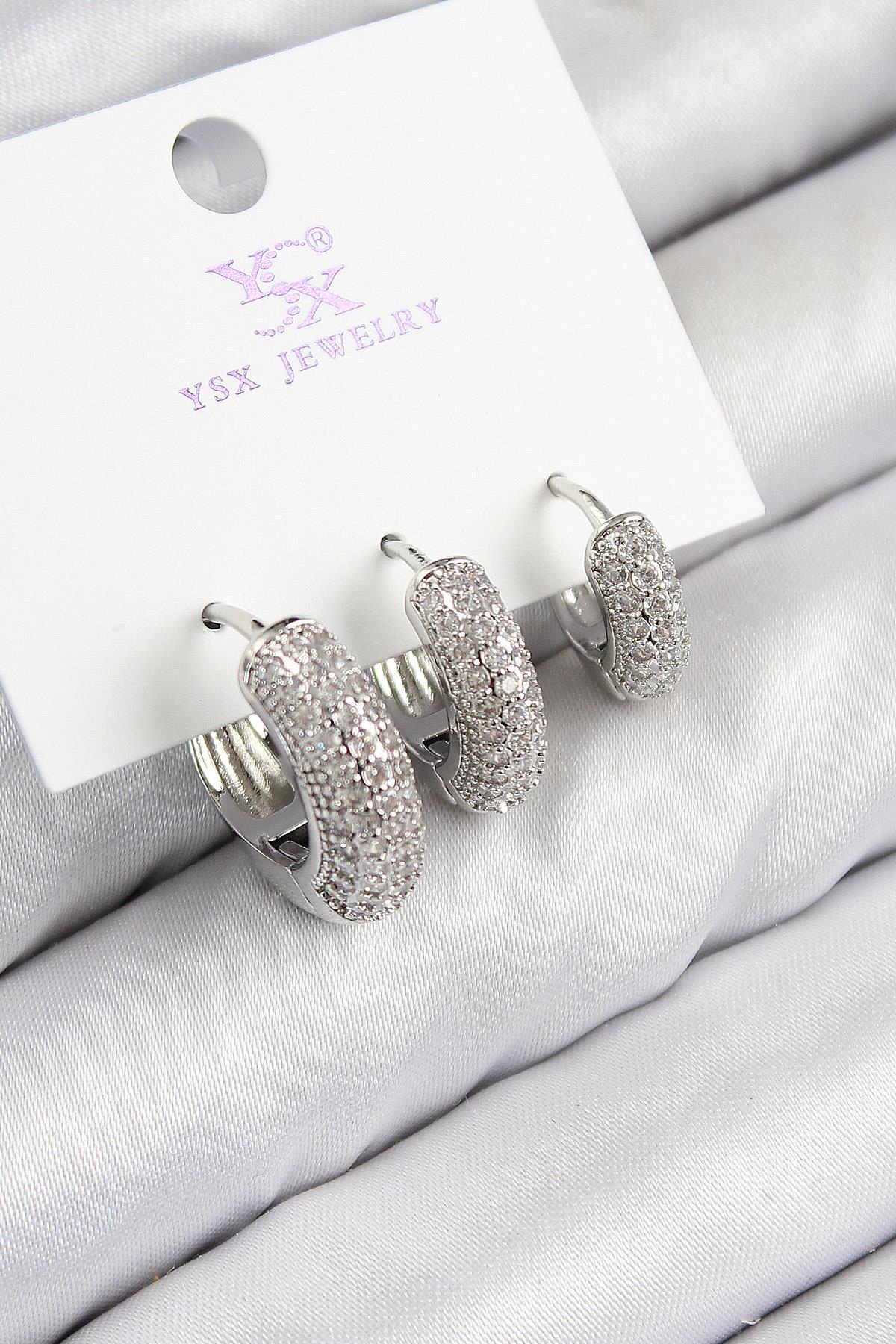 Pirinç Zirkon Taşlı 3'lü Halka Model Gümüş Renk Kadın Küpe