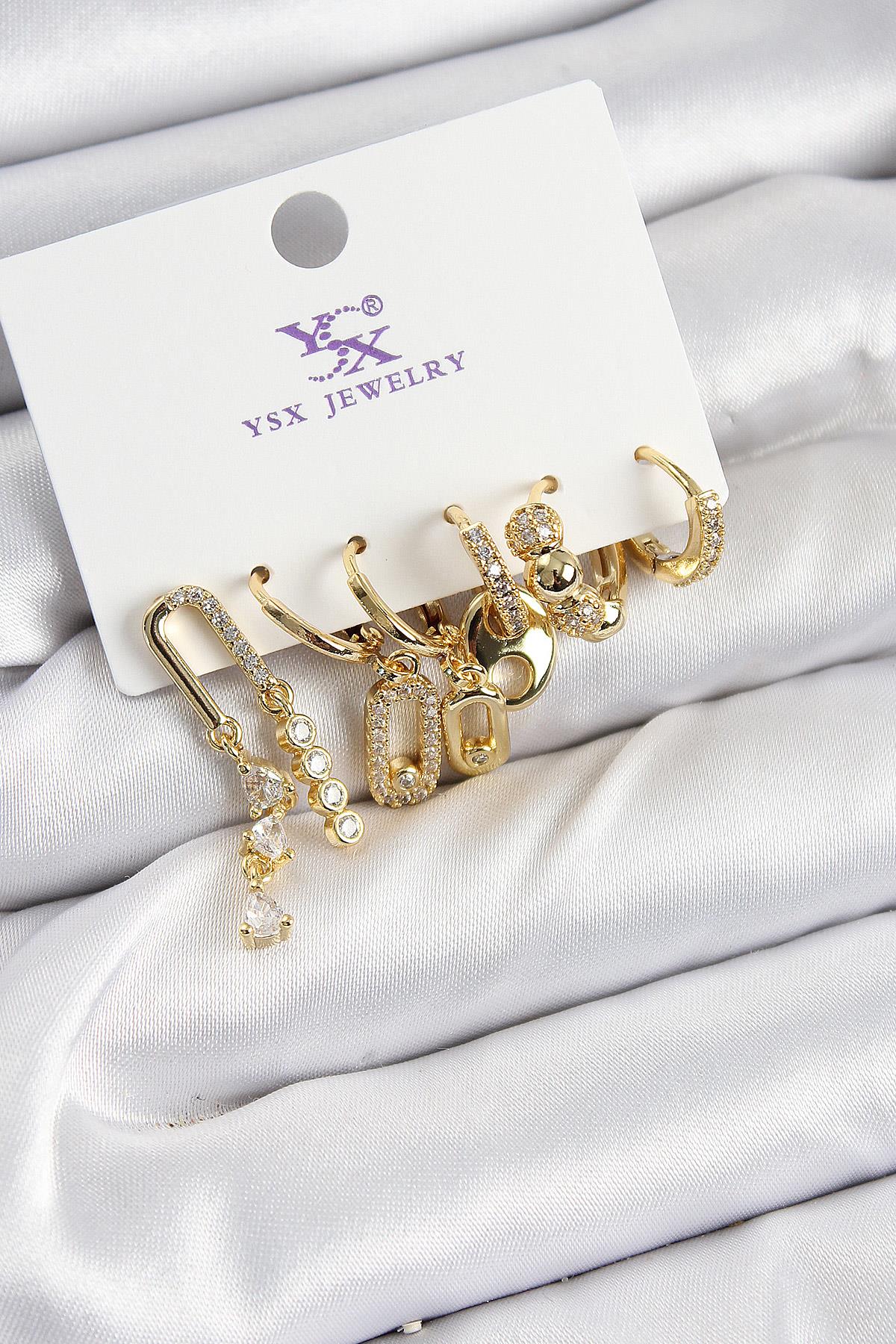 Pirinç Zİrkon Taşlı Dikdörtgen Model Gümüş Renk 3'lü Çift Kadın Küpe