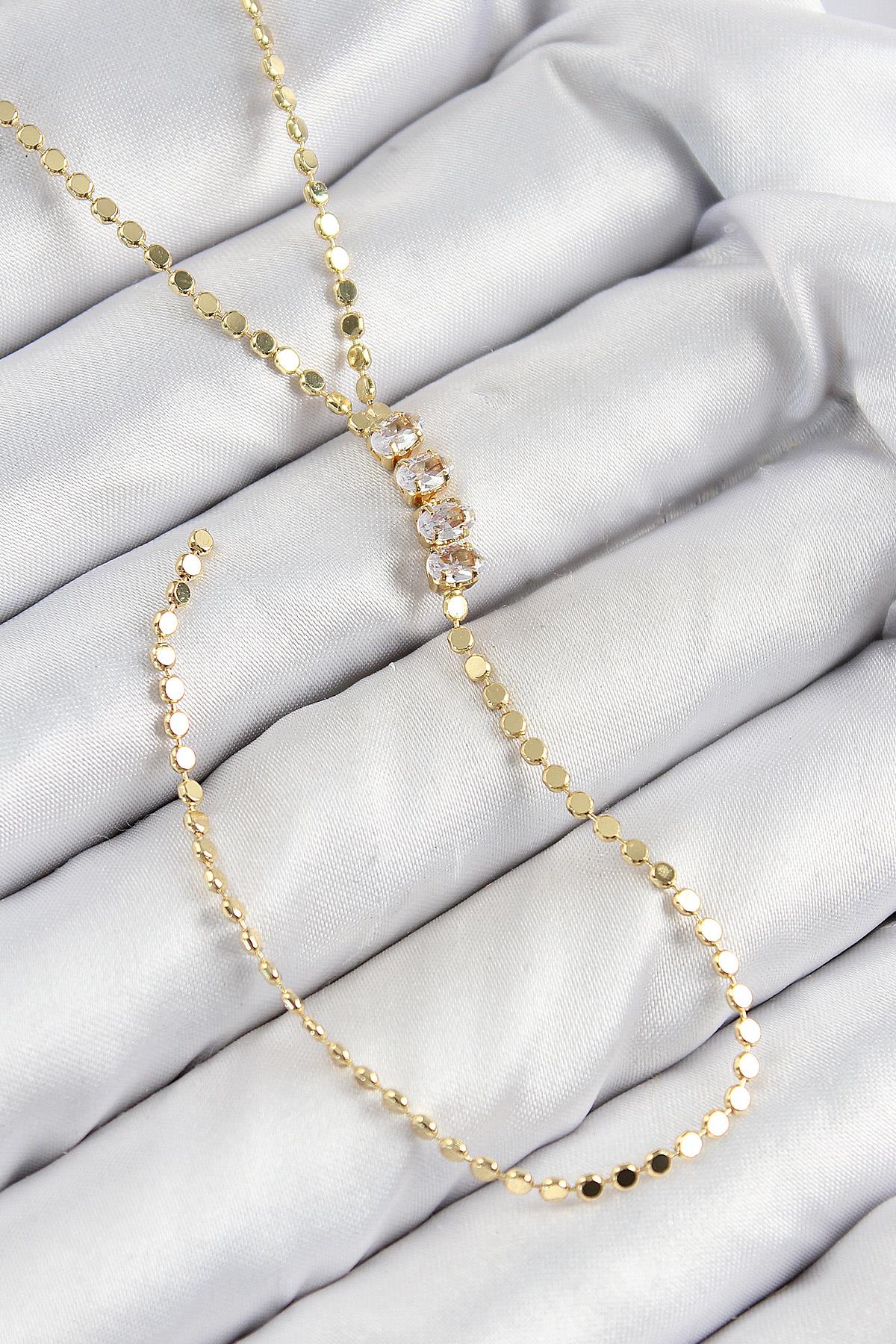 Pirinç Zirkon Taşlı Ezme Zincirli Model Gold Renk Y Kolye