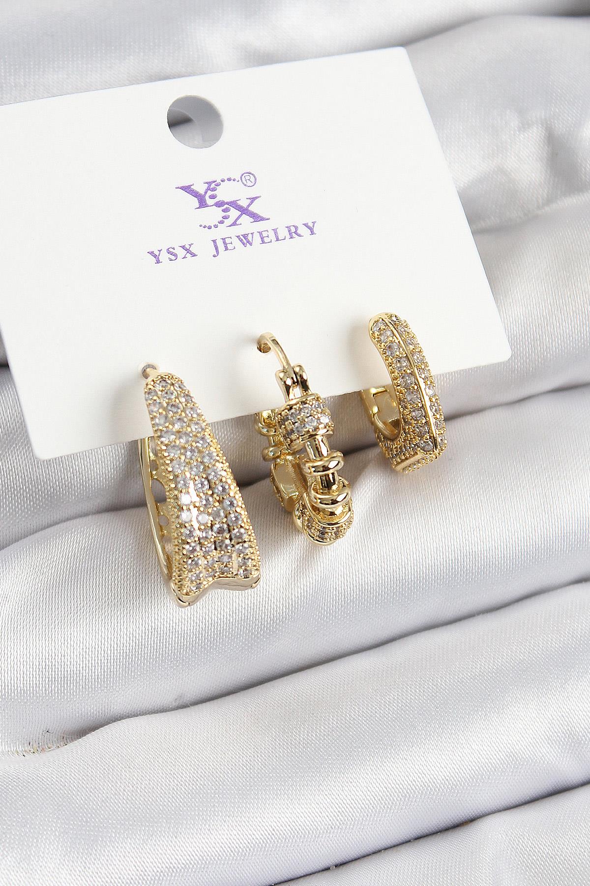 Pirinç Zİrkon Taşlı Halka Model Gold Renk 3'lü Kadın Küpe