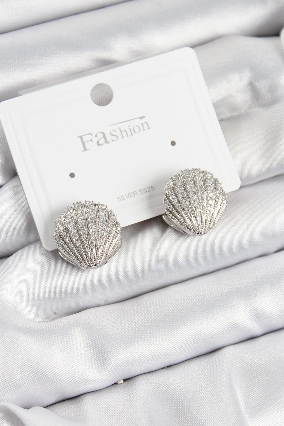 Pirinç Zirkon Taşlı İstiridye Model Gümüş Renk 925 Ayar Gümüş Çivi Kadın Küpe
