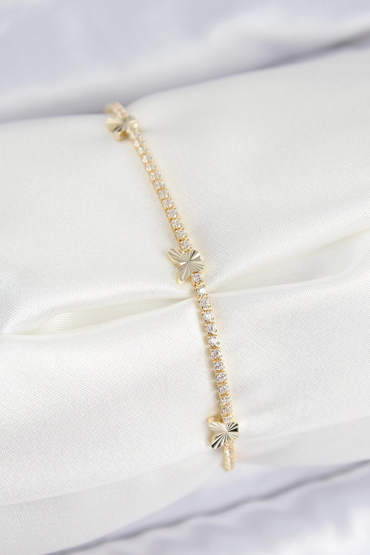 Pirinç Zirkon Taşlı Kelebek Model Gold Renk Kadın Bilekilk