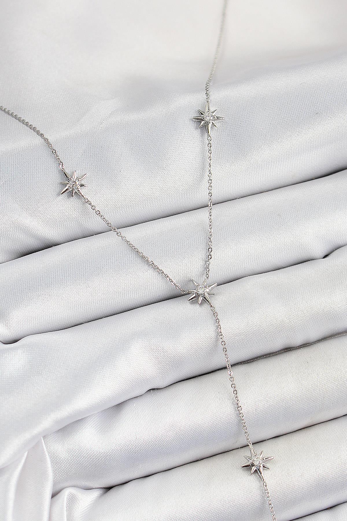 Pirinç Zirkon Taşlı Kutup Yıldız Figürlü Y Model Gümüş Renk Kadın Kolye
