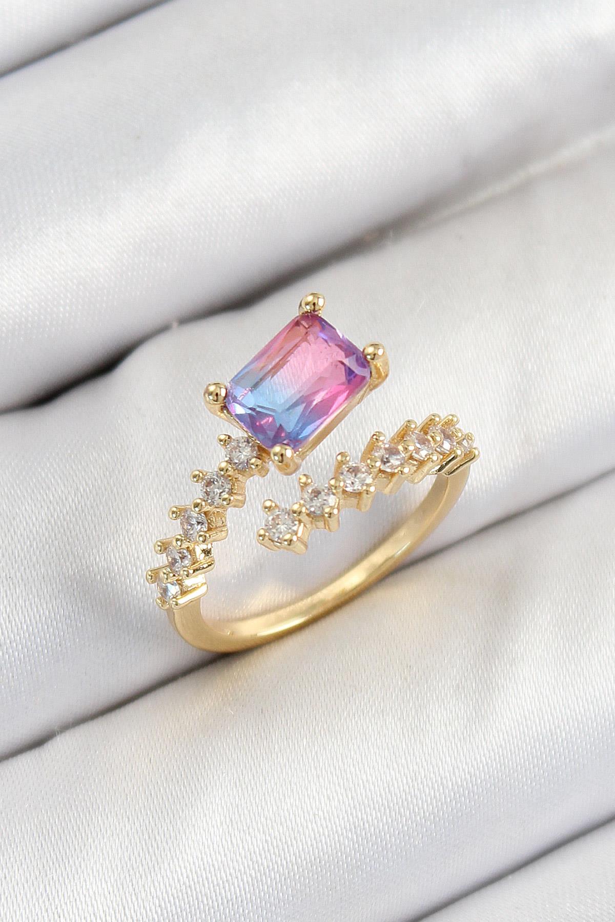 Pirinç Zirkon Taşlı Renkli Model Gold Renk Kadın Yüzük