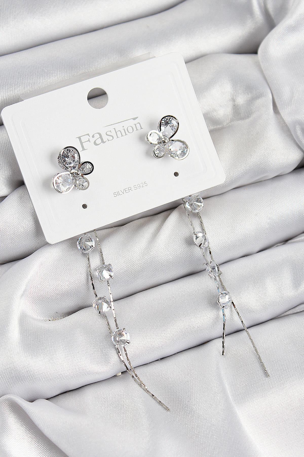 Pirinç Zirkon Taşlı Sallantılı Kelebek Model Gümüş Renk 925 Ayar Gümüş Çivi Kadın Küpe