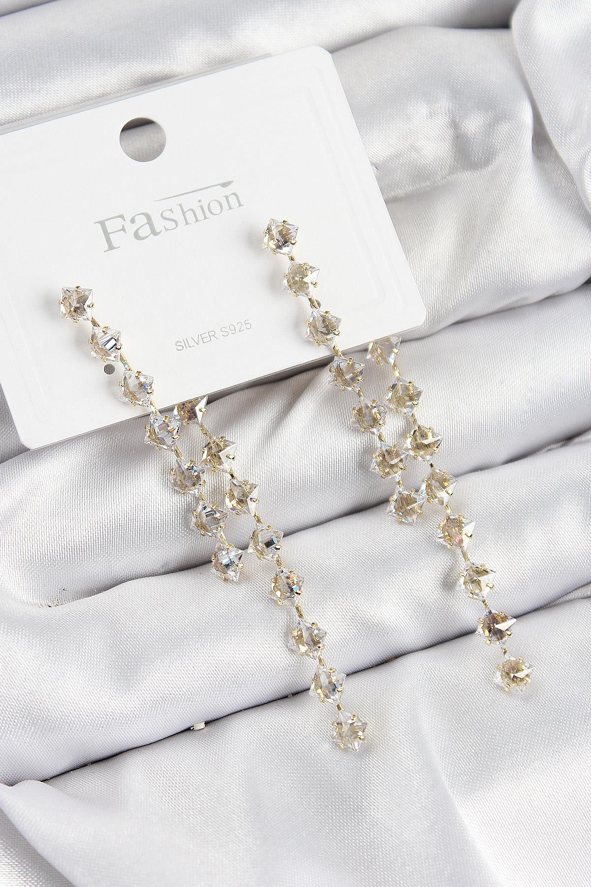 Pirinç Zirkon Taşlı Sallantılı Model Gold Renk 925 Ayar Gümüş Çivi Kadın Küpe